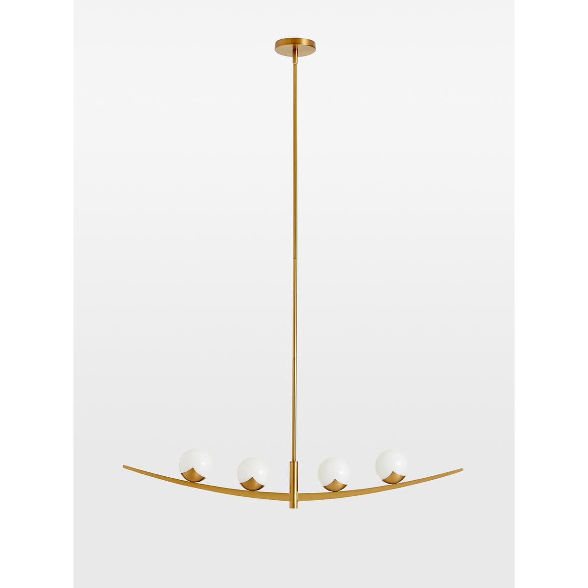 The ceiling lights at Soho House Rome formed the inspiration forthe Ida chandelier, featuring a swooped antique brass frame withfour opaque glass orbs. Use this versatile lighting option to bringa standout touch to your dining area. Chandelier with opaque orbs. Swooped frame. Adjustable pole kit included. Requires four x G9 max 4W T4 LED bulb. Inspired by Soho House Rome.