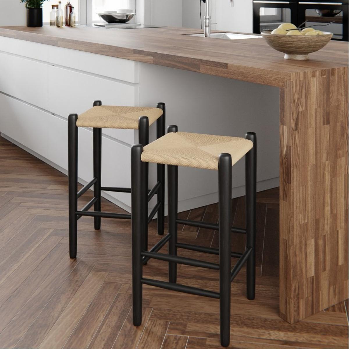 The Ida Kitchen Stool’s combination of natural weave and black finish makes it a versatile piece that seamlessly blends rustic warmth with contemporary style. I love it for its clean design and tactile appeal, which work well in both modern and eclectic interiors. It’s particularly effective in open-plan kitchens or breakfast bars, where its understated elegance can complement a variety of colour schemes and materials. For styling tips, pair it with light wood or monochrome surroundings to highlight its natural textures, or use it as a statement piece against darker, more minimal spaces. Its practical height and sturdy construction also make it a smart choice for casual seating, ensuring it combines function with aesthetic appeal.