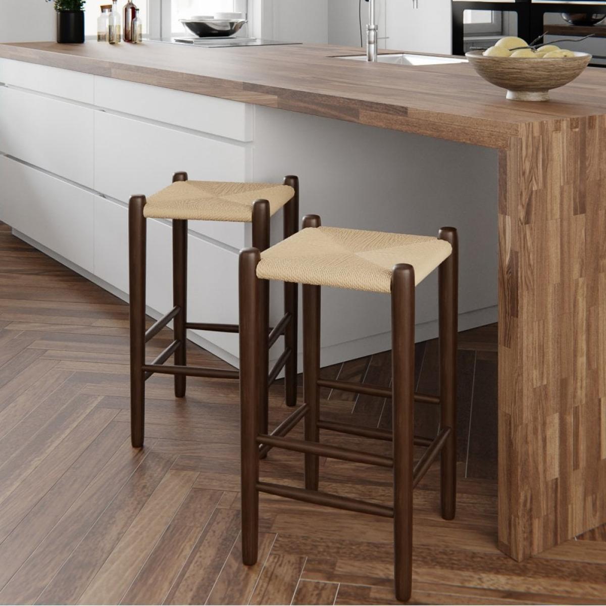 I often reach for the Ida stool when I want a quietly modern look with a nod to craft. The warm walnut legs and natural paper-cord seat bring in texture without overwhelming a scheme, so it sits comfortably in Scandi-inspired, minimalist or even contemporary farmhouse kitchens. Styling-wise, tuck it under a pale island or pair with slim-lined pendants for an uncluttered breakfast bar setup. Leave the seat clear to show off its weave, or introduce a simple linen cushion in a muted tone. Its clean lines also make it easy to move into a dining nook or home office corner when you need extra seating.