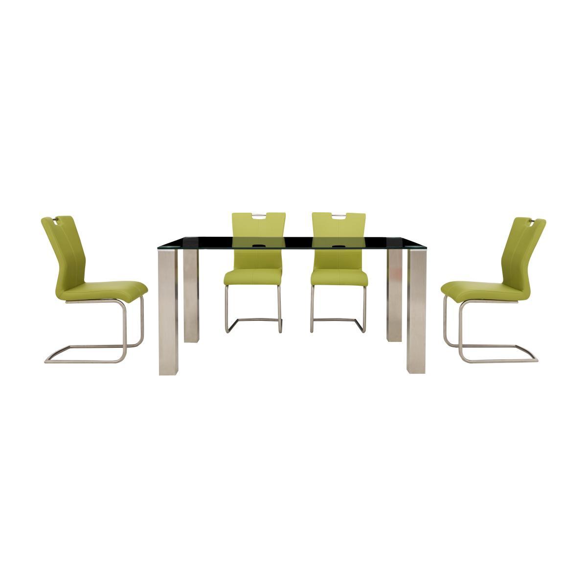 Got a clever idea for your kitchen diner or dining room? Ideas can make it happen. Cool, contemporary and highly customisable, the Ideas dining collection makes it easy to create the perfect dining set for you and your home. Both the dining table and bar table are available in a choice of four different glass tops and two different leg finishes. Dining chairs and bar stools feature a selection of stylish bases and come in ten fabulous colours for the faux leather upholstery. Simply mix and match colours, styles and finishes and make something amazing. Fantastic value, fabulous style – that’s Ideas. It doesn’t get more stylish than a sleek glass-topped table and faux-leather chairs. Beautifully made with a choice of stainless steel or powder-coated steel legs. Why you’ll love it. Sleek and minimalist design at a great-value price. Ultra-modern style that takes centre stage in any dining space. Four contemporary faux-leather cantilevered chairs in a choice of colours. Opt for stainless steel or industrial-style black powder-coated steel legs. Square-edged legs make an instant style statement. The black glass top is easy to clean and super-practical. What you need to know. Use placemats and coasters at all times to avoid scratching the surface. Simply mop spills with a damp cloth. Avoid using abrasive clothes or cleaning materials. A compact bar table and a wide selection of dining sets are also available.