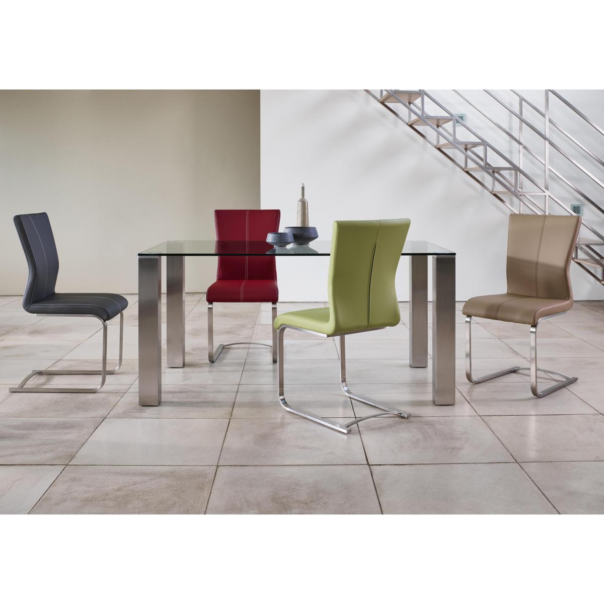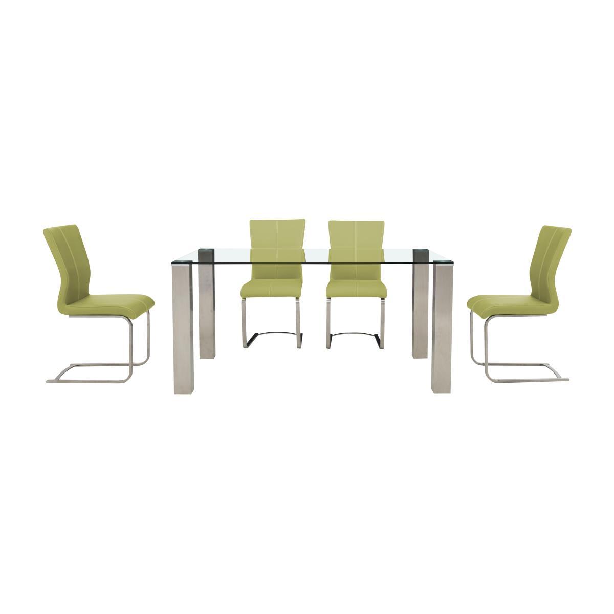Ideas 160cm Dining Table with Clear Tabletop and 4 Dining Chairs with Square-Edged Cantilever Bases with Curved Bar