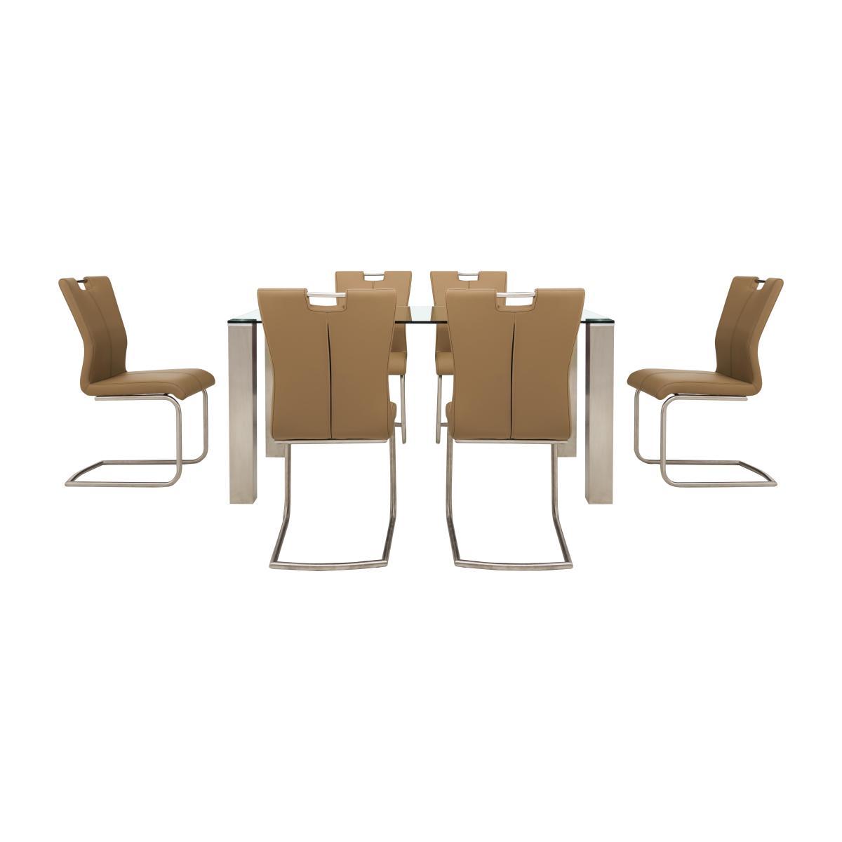 Got a clever idea for your kitchen diner or dining room? Ideas can make it happen. Cool, contemporary and highly customisable, the Ideas dining collection makes it easy to create the perfect dining set for you and your home. Both the dining table and bar table are available in a choice of four different glass tops and two different leg finishes. Dining chairs and bar stools feature a selection of stylish bases and come in ten fabulous colours for the faux leather upholstery. Simply mix and match colours, styles and finishes and make something amazing. Fantastic value, fabulous style – that’s Ideas. Minimalist design meets urban cool in this contemporary dining set. Statement steel legs, a space-opening glass tabletop and on-trend faux-leather chairs. Why you’ll love it. Sleek and minimalist design at a great-value price. Ultra-modern style that takes centre stage in any dining space. Six contemporary faux-leather cantilevered chairs in a choice of colours. Opt for stainless steel or industrial-style black powder-coated steel legs. Square-edged legs make an instant style statement. The clear glass top is easy to clean and super-practical. What you need to know. Use placemats and coasters at all times to avoid scratching the surface. Simply mop spills with a damp cloth. Avoid using abrasive clothes or cleaning materials. A compact bar table and a wide selection of dining sets are also available.