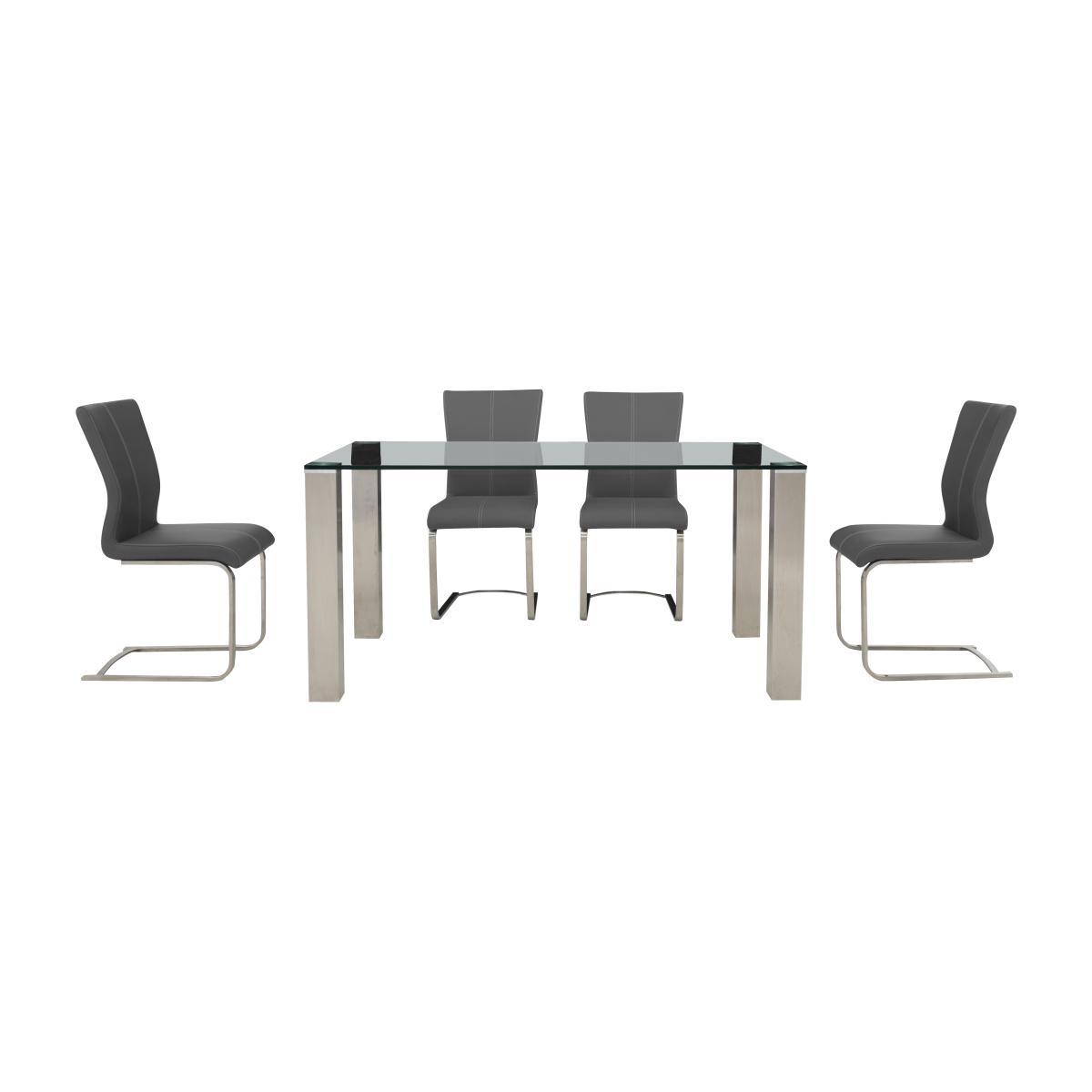Ideas 160cm Dining Table with Grey Tabletop and 4 Dining Chairs with Square-Edged Cantilever Bases with Curved Bar