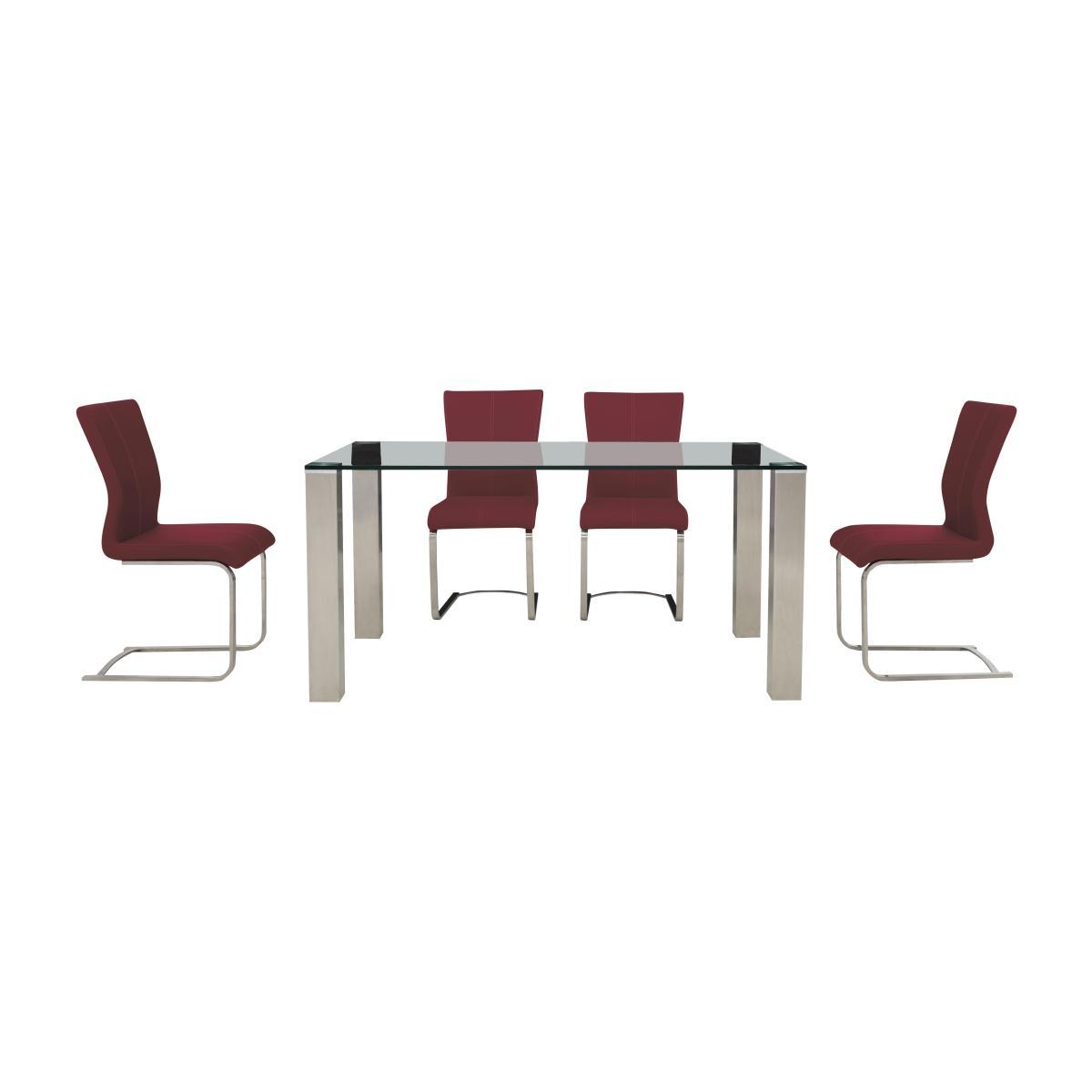 Got a clever idea for your kitchen diner or dining room? Ideas can make it happen. Cool, contemporary and highly customisable, the Ideas dining collection makes it easy to create the perfect dining set for you and your home. Both the dining table and bar table are available in a choice of four different glass tops and two different leg finishes. Dining chairs and bar stools feature a selection of stylish bases and come in ten fabulous colours for the faux leather upholstery. Simply mix and match colours, styles and finishes and make something amazing. Fantastic value, fabulous style – that’s Ideas. Urban cool meets contemporary design. We love this dining set’s statement steel legs and easy-clean glass tabletop. Not to mention its comfy faux-leather chairs. Why you’ll love it. Sleek and minimalist design at a great-value price. Ultra-modern style that takes centre stage in any dining space. Four contemporary faux-leather cantilevered chairs in a choice of colours. Opt for stainless steel or industrial-style black powder-coated steel legs. Square-edged legs make an instant style statement. The grey glass top is easy to clean and super-practical. What you need to know. Use placemats and coasters at all times to avoid scratching the surface. Simply mop spills with a damp cloth. Avoid using abrasive clothes or cleaning materials. A compact bar table and a wide selection of dining sets are also available.