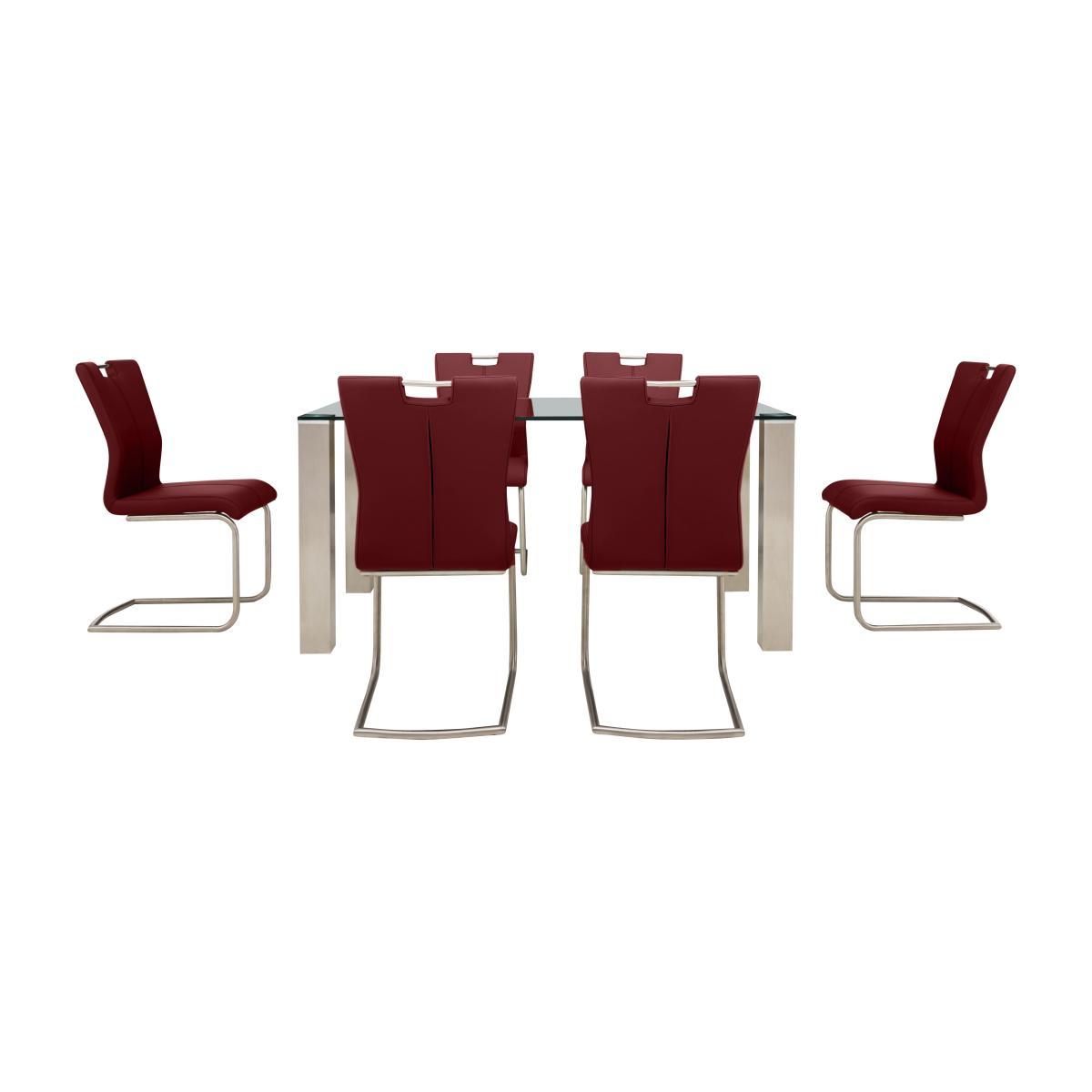Got a clever idea for your kitchen diner or dining room? Ideas can make it happen. Cool, contemporary and highly customisable, the Ideas dining collection makes it easy to create the perfect dining set for you and your home. Both the dining table and bar table are available in a choice of four different glass tops and two different leg finishes. Dining chairs and bar stools feature a selection of stylish bases and come in ten fabulous colours for the faux leather upholstery. Simply mix and match colours, styles and finishes and make something amazing. Fantastic value, fabulous style – that’s Ideas. Entertain in style with this ultra-modern dining set. Statement steel legs, a sleek glass tabletop and faux-leather cantilevered chairs – what’s not to love?. Why you’ll love it. Sleek and minimalist design at a great-value price. Ultra-modern style that takes centre stage in any dining space. Six contemporary faux-leather cantilevered chairs in a choice of colours. Opt for stainless steel or industrial-style black powder-coated steel legs. Square-edged legs make an instant style statement. The grey glass top is easy to clean and super-practical. What you need to know. Use placemats and coasters at all times to avoid scratching the surface. Simply mop spills with a damp cloth. Avoid using abrasive clothes or cleaning materials. A compact bar table and a wide selection of dining sets are also available.