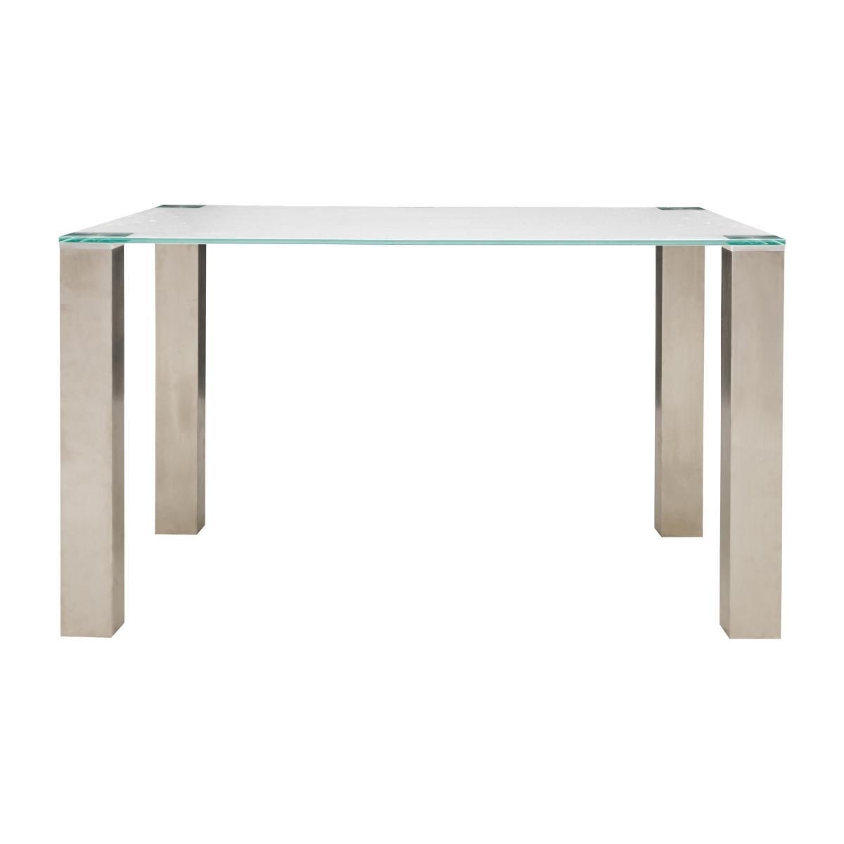 Got a clever idea for your kitchen diner or dining room? Ideas can make it happen. Cool, contemporary and highly customisable, the Ideas dining collection makes it easy to create the perfect dining set for you and your home. Both the dining table and bar table are available in a choice of four different glass tops and two different leg finishes. Dining chairs and bar stools feature a selection of stylish bases and come in ten fabulous colours for the faux leather upholstery. Simply mix and match colours, styles and finishes and make something amazing. Fantastic value, fabulous style – that’s Ideas. Minimalist style, maximum impact. This ultra-modern glass dining table brings sleek good looks and statement design to every mealtime. Why you’ll love it. Sleek and minimalist design at a great-value price. Ultra-modern style that takes centre stage in any dining space. Opt for stainless steel or industrial-style black powder-coated steel legs. Square-edged legs make an instant style statement. The white glass top is easy to clean and super-practical. What you need to know. Use placemats and coasters at all times to avoid scratching the surface. Simply mop spills with a damp cloth. Avoid using abrasive clothes or cleaning materials. A compact bar table and a wide selection of dining sets are also available.