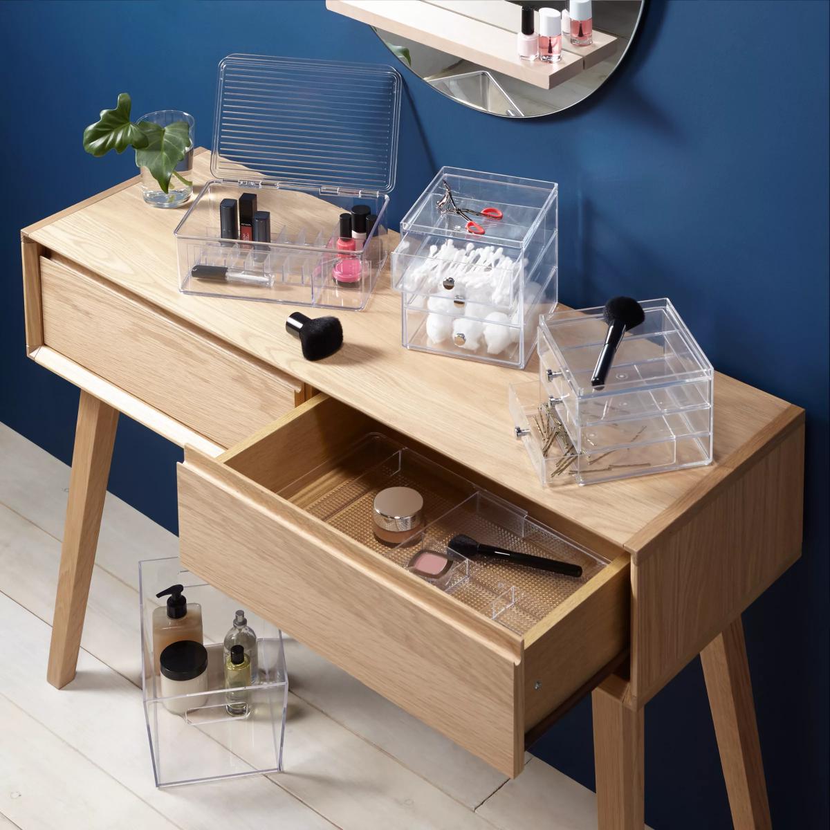 Perfect for makeup, hair accessories or stationery items, these small chests are stackable for customized storage.