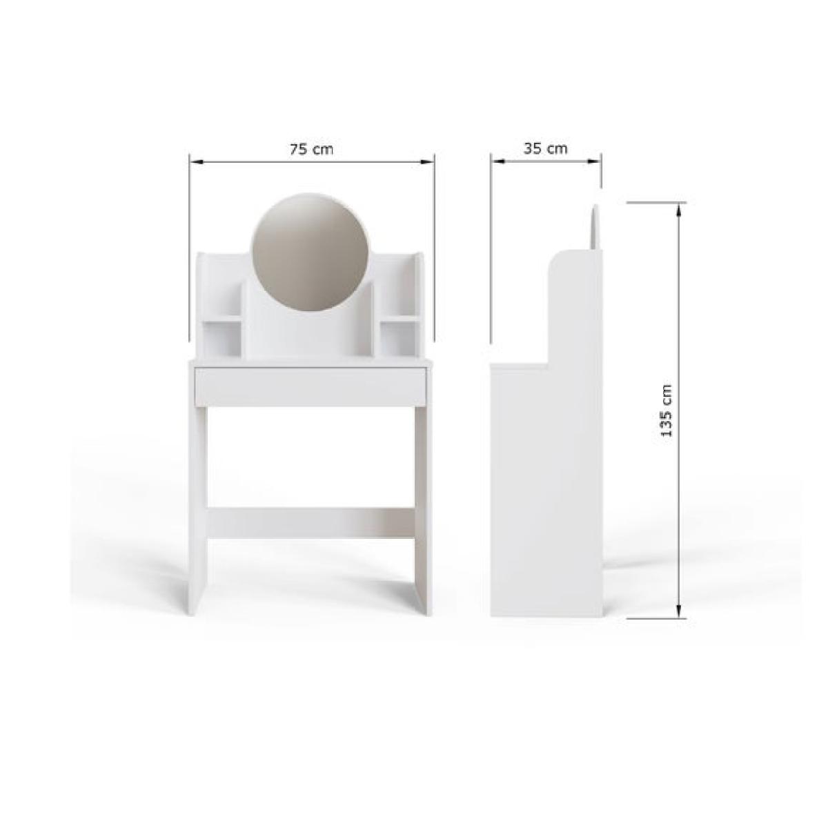 * Large round mirror for full visibility * Open shelves for everyday essentials * Spacious drawer for extra storage * Designed for modern bedrooms and dressing areas The Idis Dressing Table with Mirror is built to support your daily routine with style and structure. Its large round mirror gives you a clear view for makeup, hair or skincare, while the open shelving keeps your go-to items close by. A spacious drawer offers extra room for accessories or products you want tucked away. The layout makes it easy to keep everything organised without slowing you down. Designed to suit modern spaces, it’s a practical addition to any bedroom or dressing area. A tidy setup that helps you start and end the day your way.