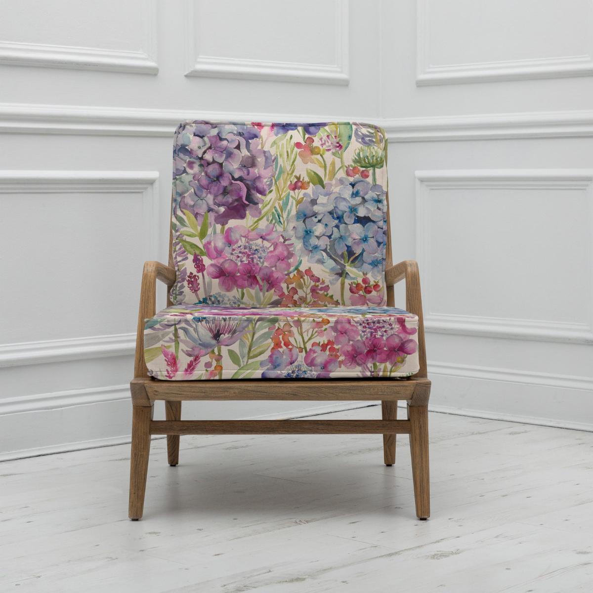 I love the Idris Chair because it adds a vibrant, vintage-inspired touch to any space. Its bold hydrangea print makes it a fantastic statement piece, especially in eclectic or boho interiors, but it can also incorporate well into more neutral schemes as a pop of colour. It works beautifully as an accent in a living room corner, a cosy reading nook, or even in a bedroom to bring in personality. Practical styling tips include pairing it with simple, solid-coloured cushions to temper the pattern, and placing it beside neutral furniture to let its colours really shine. Its versatile wooden frame means it can balance both modern and traditional interiors seamlessly.