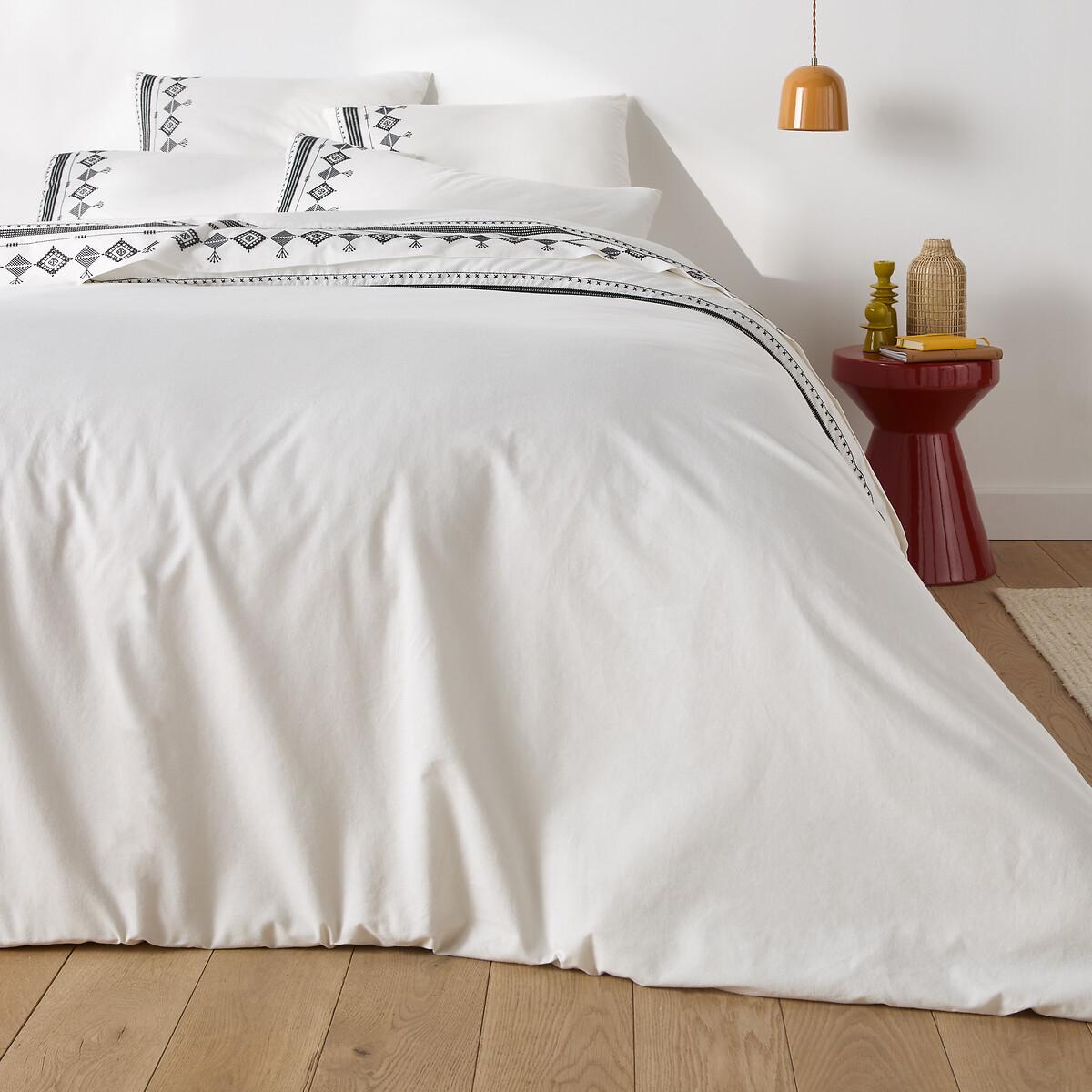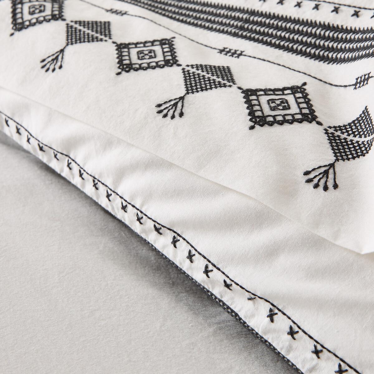 Take a summer trip to the heart of the riads with Ifrane bed linen in washed cotton, highlighted with ethnic embroidery in traditional Moroccan motifs. Created by La Redoute Interiors. The washed cotton has been delicately bleached during its manufacture. Soft, supple and comfortable, it softens over time. Its slightly wrinkled appearance is incredibly on-trend, and it does not require ironing. Product Details • 100% cotton • Washed cotton • Front: ethnic embroidery in black thread, back: plain • Straight buttoned hem. As the seasons change, add your own personal touch by mixing the Ifrane range with our range of Scenario plains. Care Advice • Machine washable at 60°C • By washing your laundry at 40°C instead of 60°C, you limit energy consumption. Dimensions • 140 x 200cm: Single • 200 x 200cm: Double • 240 x 220cm: King • 260 x 240cm: King • OEKO-TEX® Standard 100. Standard 100 certification by OEKO-TEX® tests textile products for harmful substances via an independent, international label.