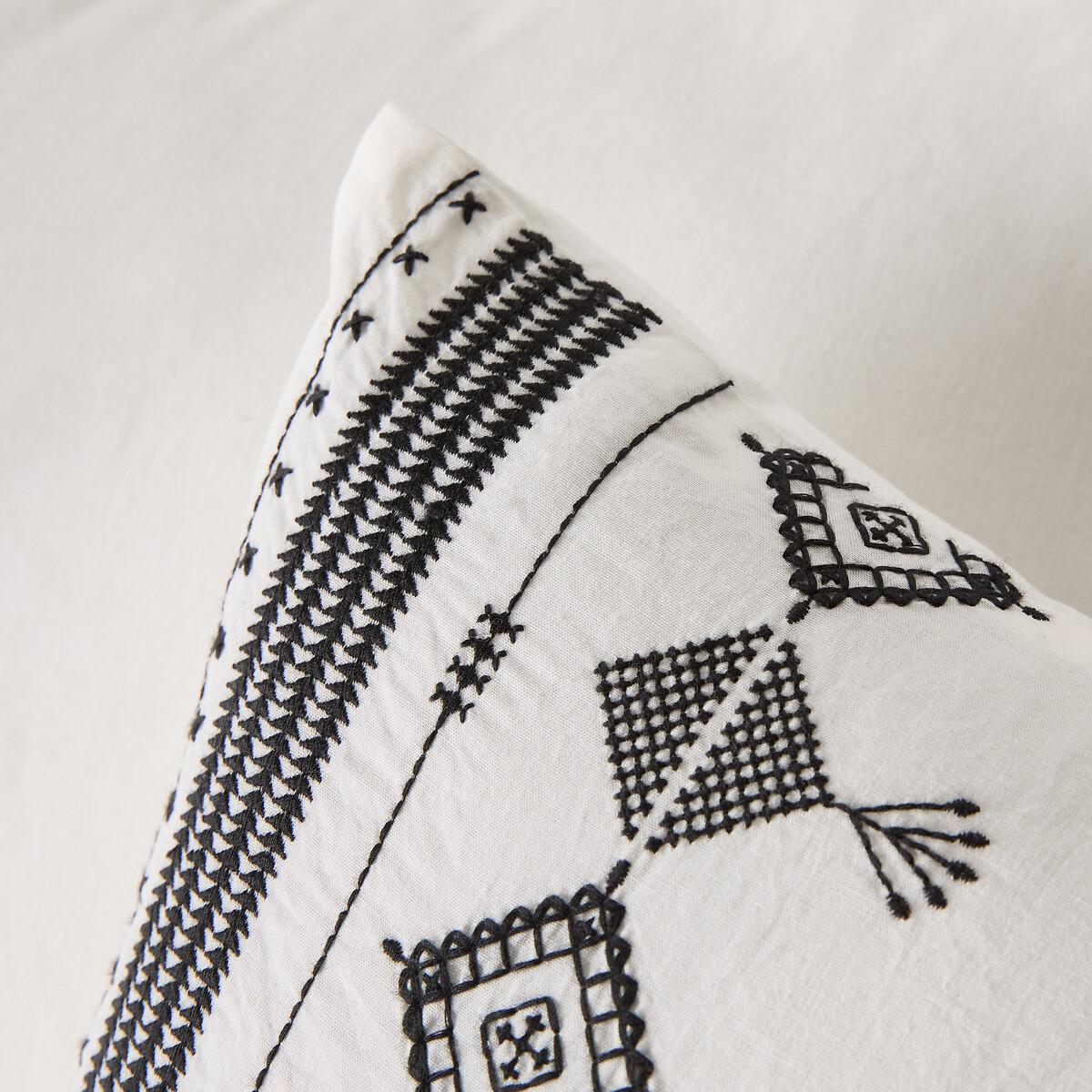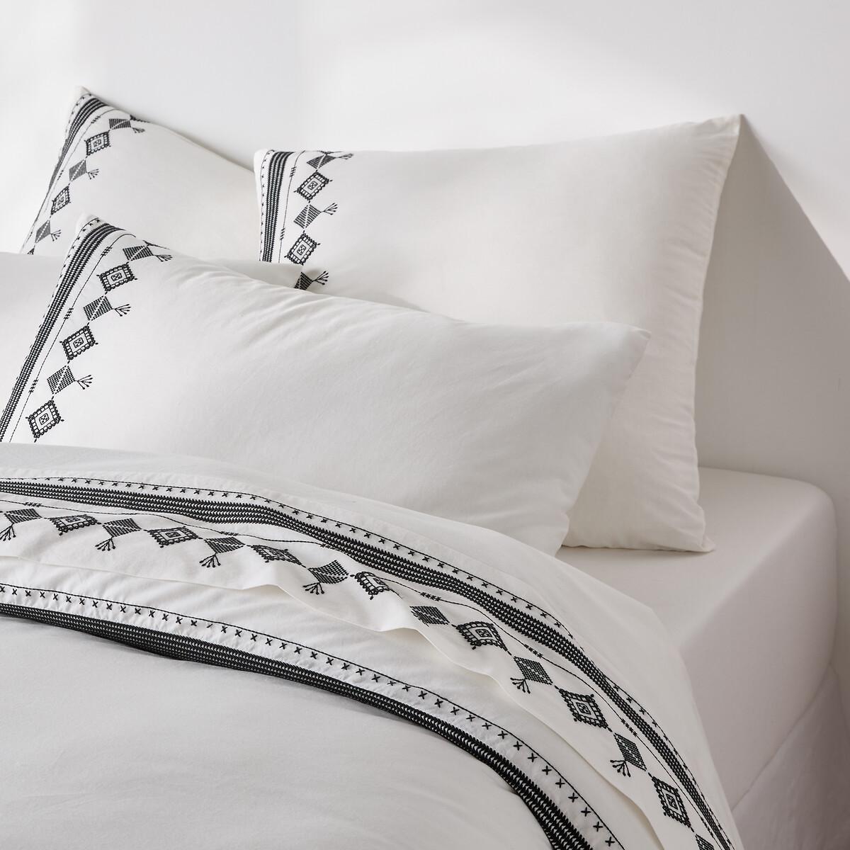 Take a summer trip to the heart of the riads with Ifrane bed linen in washed cotton, highlighted with ethnic embroidery in traditional Moroccan motifs. Created by La Redoute Interiors. The washed cotton has been delicately bleached during its manufacture. Soft, supple and comfortable, it softens over time. Its slightly wrinkled appearance is incredibly on-trend, and it does not require ironing. Product Details • 100% cotton • Washed cotton • Front: ethnic embroidery in black thread, back: plain. As the seasons change, add your own personal touch by mixing the Ifrane range with our range of Scenario plains. Care Advice • Machine washable at 60°C • By washing your laundry at 40°C instead of 60°C, you limit energy consumption. Dimensions • 50 x 70cm: Rectangular pillowcase • 63 x 63cm: Square pillowcase • OEKO-TEX® Standard 100. Standard 100 certification by OEKO-TEX® tests textile products for harmful substances via an independent, international label.