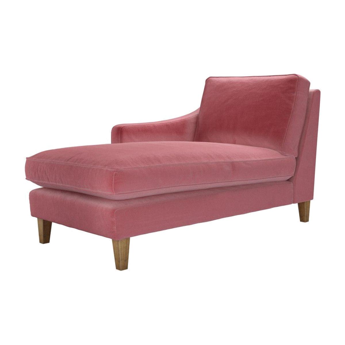 I love this chaise for its playful yet sophisticated vibe, especially in the Dusty Rose cotton matte velvet. It works beautifully in both contemporary and vintage-inspired interiors, adding a touch of softness and colour without overwhelming the space. Its compact size makes it perfect for cosy corners, reading nooks, or as an accent piece in a living room. Practical styling tips include pairing it with layered textures-think plush throws and cushions in complementary shades-to create an inviting lounge area. It also works well alongside neutral furniture, allowing the colour to pop, or mixing with metallics and marble for a chic, modern look. The soft velvet finish invites comfort and makes it ideal for relaxing moments.