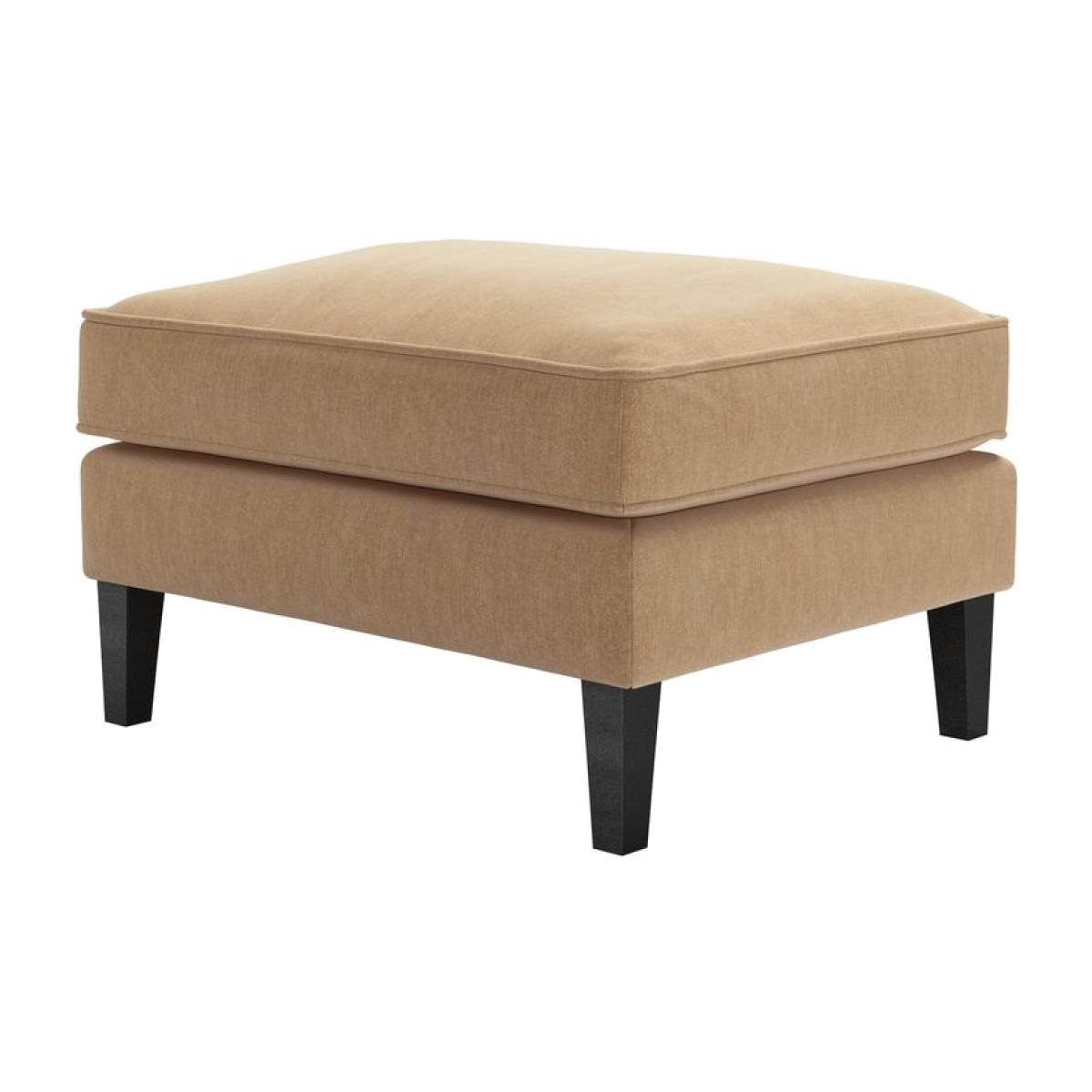 I love this footstool for its versatile style and neutral tone, making it easy to incorporate into various interiors. The biscuit brushstroke fabric adds subtle texture and visual interest without overwhelming the space. It works particularly well in contemporary, Scandi, or classic transitional rooms, serving both as a practical footrest and an extra seating option when needed. For styling, consider pairing it with a low-profile sofa and a layered rug for a cosy, inviting vibe. It’s also great as a standalone piece in a corner - just add a tray on top to create a makeshift side table. Its compact size makes it practical for smaller living rooms or bedrooms, and you can also use it as a subtle anchor with complementary cushions or throws to build a coordinated look.