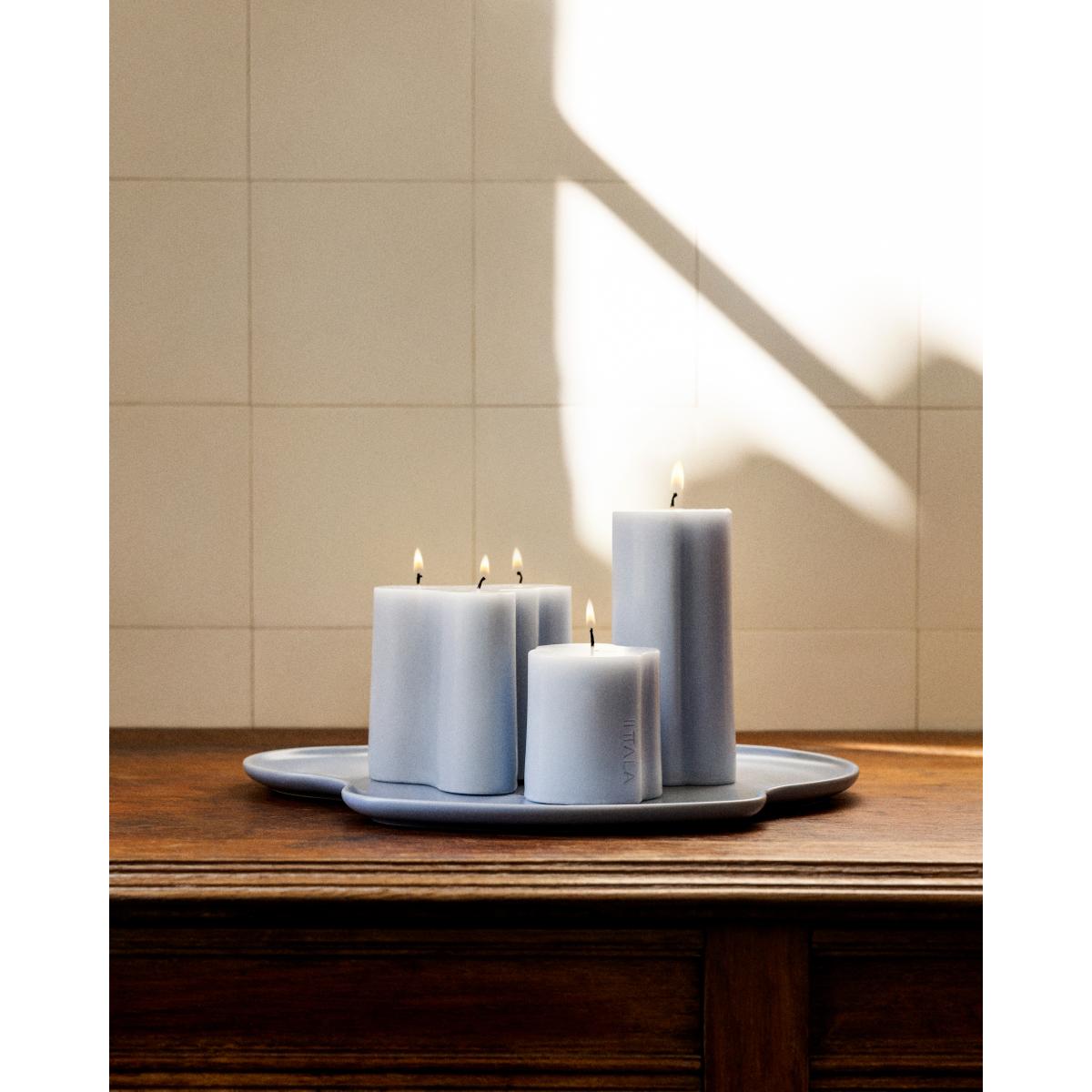 I love this block candle for its minimalist, sculptural appeal and versatile size. It works well in contemporary or Scandinavian-inspired interiors, especially when grouped with other candles or placed on a simple tray to create a calming centrepiece. Its clean lines and soft water colour make it a subtle addition that adds warmth without overwhelming the decor. For practical styling tips, try positioning it alongside natural materials like stone or wood to emphasise its earthy elegance, or combine with other sizes for a layered, cosy vignette. Its sturdy shape also makes it ideal for use on open tables or on shelves where stability is key.
