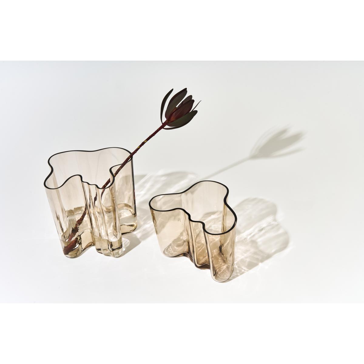 Alvar Aalto vase 140 mm from Iittala is an exclusive piece of craftsmanship and an icon in modern design. Mouth-blown in a wooden mould from 100% glass at the Iittala glassworks, each vase has a unique surface texture that beautifully reflects the light. The wooden moulds are used only a limited number of times, creating subtle variations and making each piece unique. The organic, flowing form is inspired by nature and adds a dynamic expression to the décor. The glass enhances the timeless elegance of the design, making the vase as beautiful with flowers as it is as a sculptural artwork.
