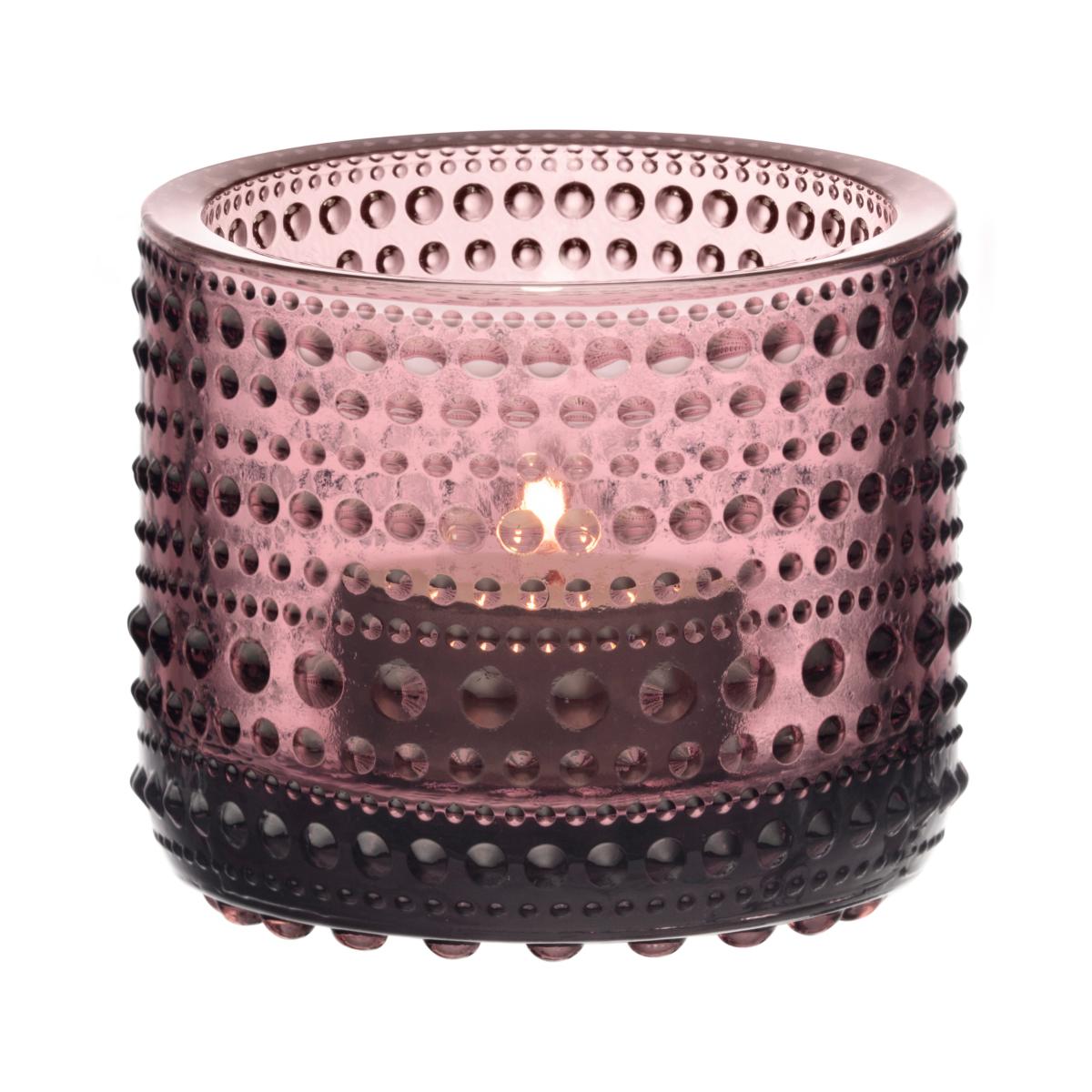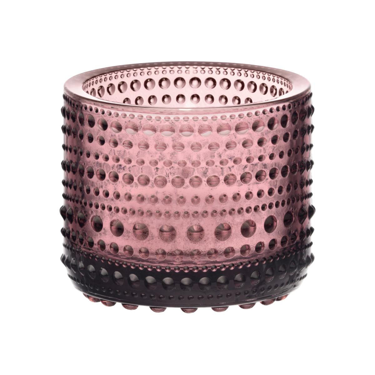 I love the Kastehelmi candleholder for its distinctive speckled glass texture which adds a tactile element to a space. Its soft pink hue makes it a versatile accessory that can suit both contemporary and more eclectic interiors, especially when paired with other coloured or clear glassware. For styling, consider grouping a few in different heights on a dining or coffee table for a cosy, inviting glow, or use it as a centrepiece with natural elements like greenery or seasonal flowers. It works particularly well in minimalist settings where its pattern can stand out, but equally it can add a subtle colour pop to a more neutral palette. Practical tip: match it with similarly coloured candles or keep the illumination minimal to highlight its textured surface even when not lit.