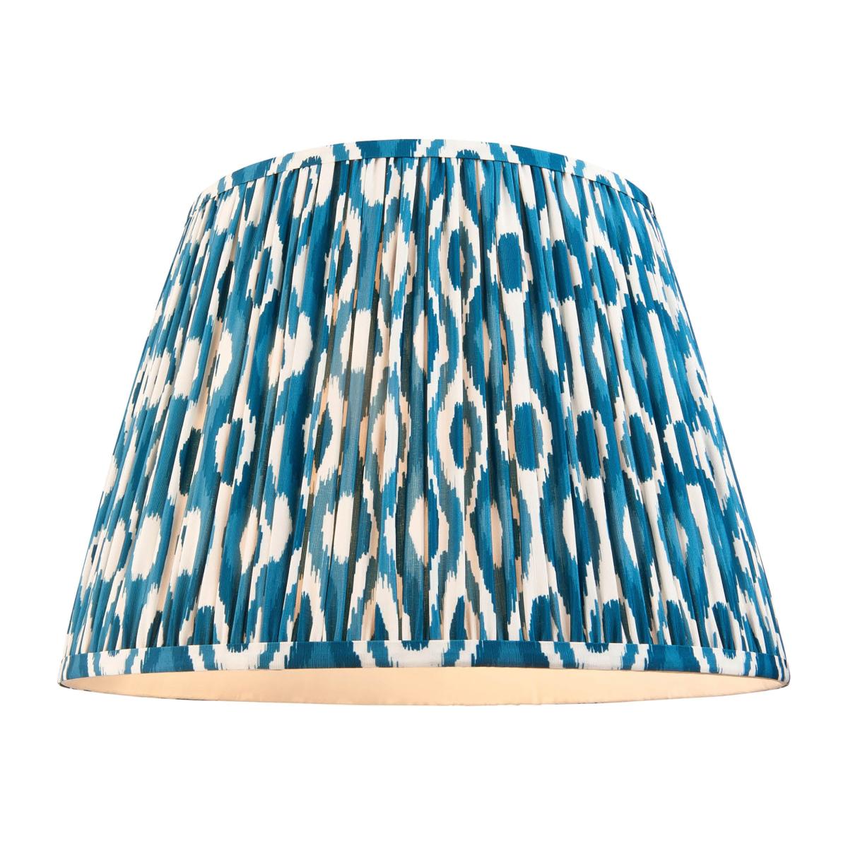 40cm tapered shade with reversible white gimbal. Unique Ikat pattern design in marlin blue with taped edge detailing and plain inner lining. Perfect when paired with one of our beautifully decorative floor lamps or cable sets.