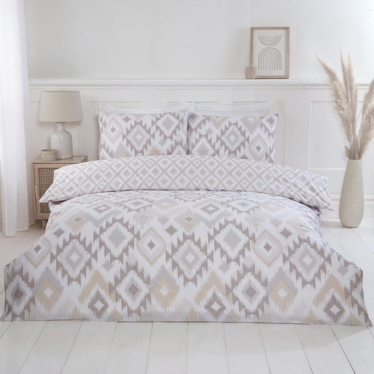 Ikat Bohemian Reversible Polycotton Duvet Set With Pillowcase - Natural / Double