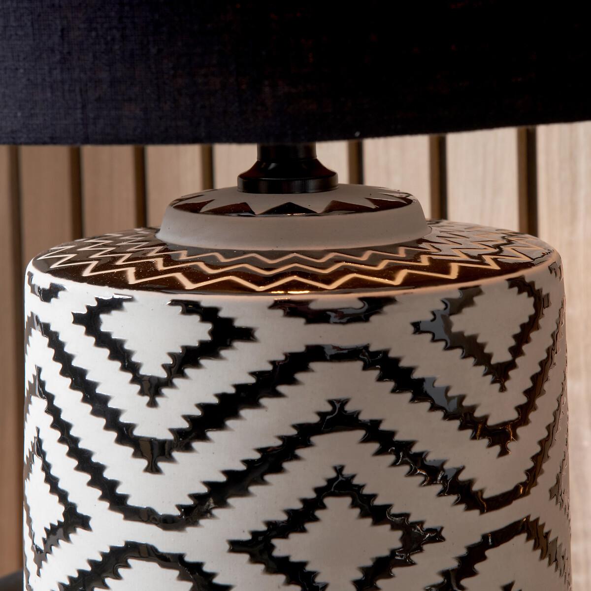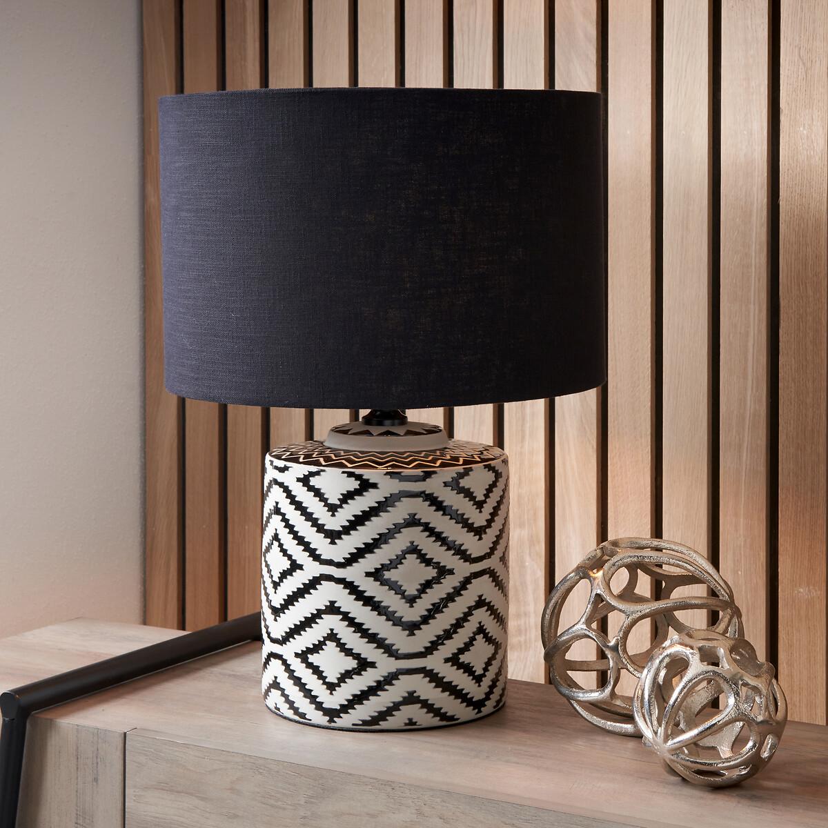 I love this little lamp base for its bold, graphic pattern that adds visual interest without overwhelming the space. It works well in both modern and eclectic interiors, especially when paired with neutral or monochrome colour schemes. The ceramic material gives it a solid, tactile quality, making it a great stand-out piece on bedside tables or console units. For styling tips, consider using a textured or textured lampshade to complement its pattern, and place it alongside other natural or metallic accents for a balanced, cohesive look. It’s versatile enough to fit into a variety of schemes, from contemporary minimalism to boho-chic, adding both style and functionality.