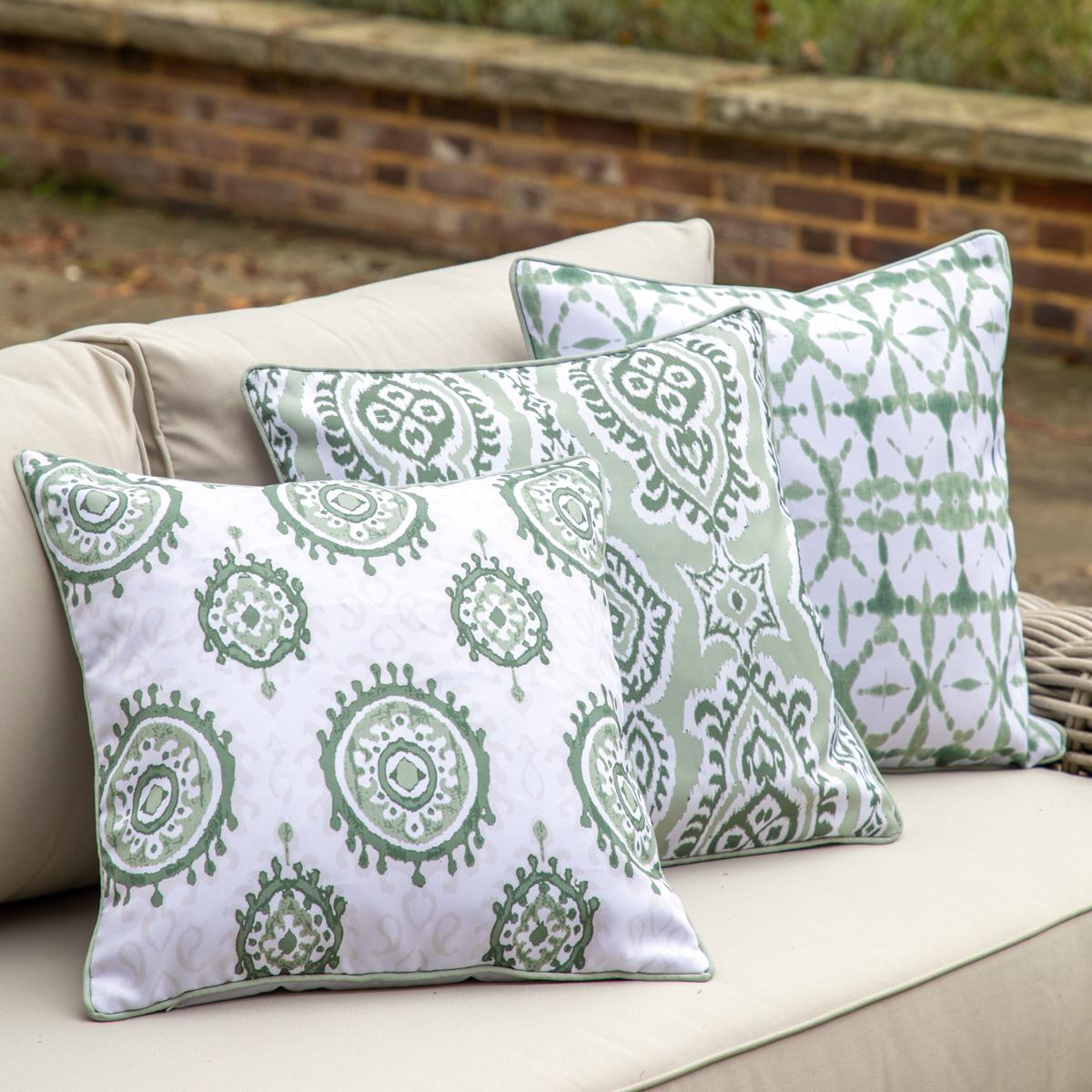 With a hand dyed look the Ikat Cushion Cover is comfort, style and practicality all in one. Covered in a UV fade, shower and mould resistant fabric you won't have to worry about anything, it's just what your outdoor chill out space needs. Cushion pads sold separately, allowing you to choose from Feather Filled or Poly Filled.