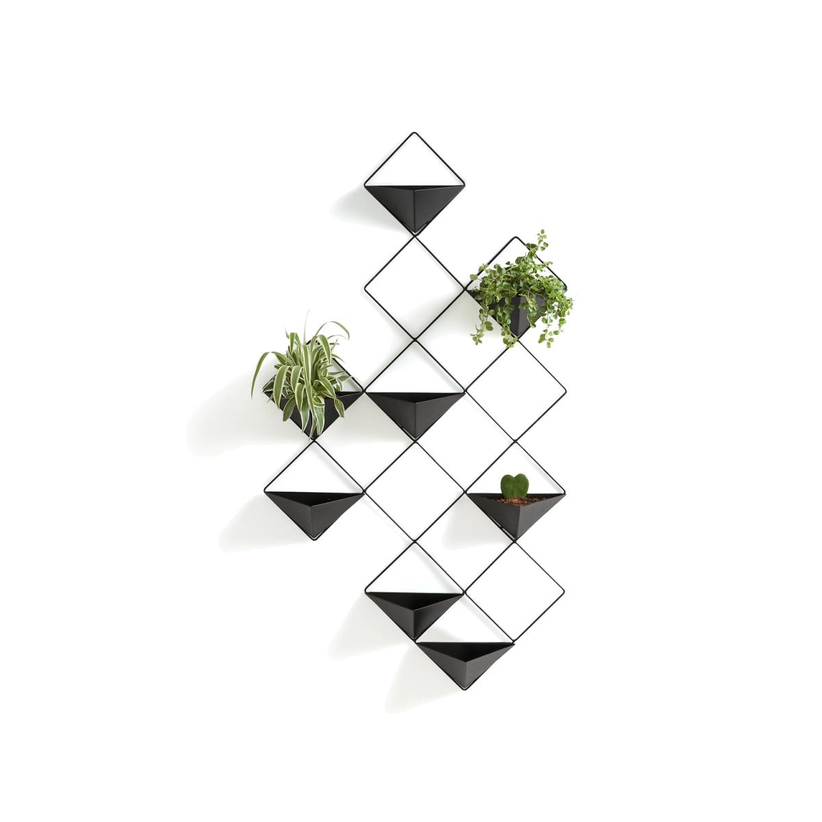 Showcase your greenery with our Ikebana plant pot wall unit. Succulents, cactus, and even mini aromatic plants or herbs, will get all the attention they deserve in this wall-mounted metal pot-holder. Its geometric design makes a stylish statement in its own right, and the plant pots are removable, so you can arrange them as you wish. Product Details • Iron coated with epoxy finish • 8 removable flower pots • Wall mounted (hooks, screws and plugs not included).Dimensions • L66 x H121 x D11cm • Dimensions of each pot: L21 x H10 x D11cm.