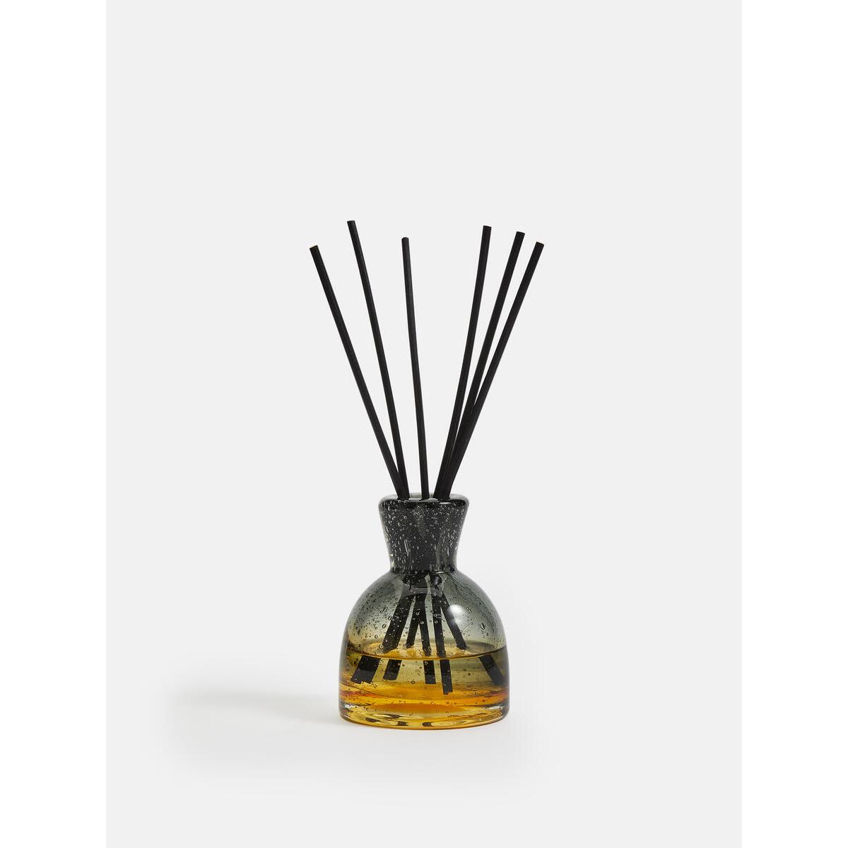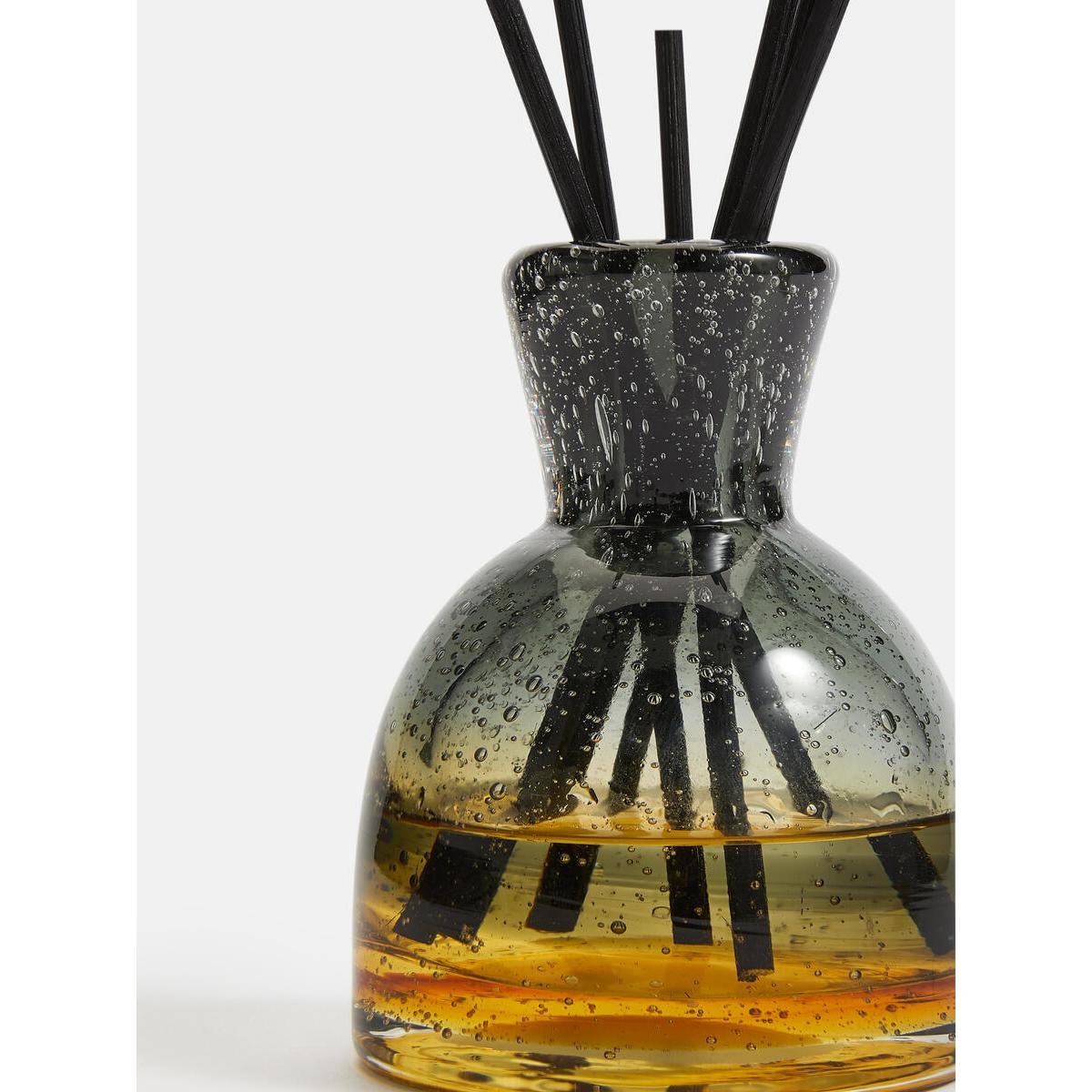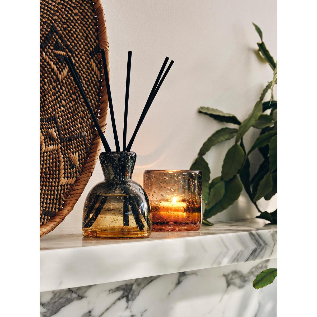 Organic and earthy in design, the Iker Diffuser is handcraftedfrom mouth-blown glass with a raw, effervescent finish. In atwo-tone smoke and amber colourway, it holds the spiced, muskyscent of our bespoke Patchouli fragrance, reminiscent of fragrantsummer evenings overlooking the Arabian Sea at Soho House Mumbai. Coordinate with the Iker Votive and Iker Hurricanes for aconsidered arrangement. Scent notes. Top: Patchouli. Middle: Cedarwood. Base: Moss. Mouth-blown glass diffuser. Organic and raw design. Textured finish. Two-tone colourway. Patchouli fragrance. Coordinate with Iker Votives and Hurricanes. Inspired by Soho House Mumbai.