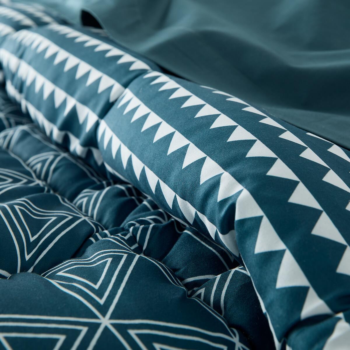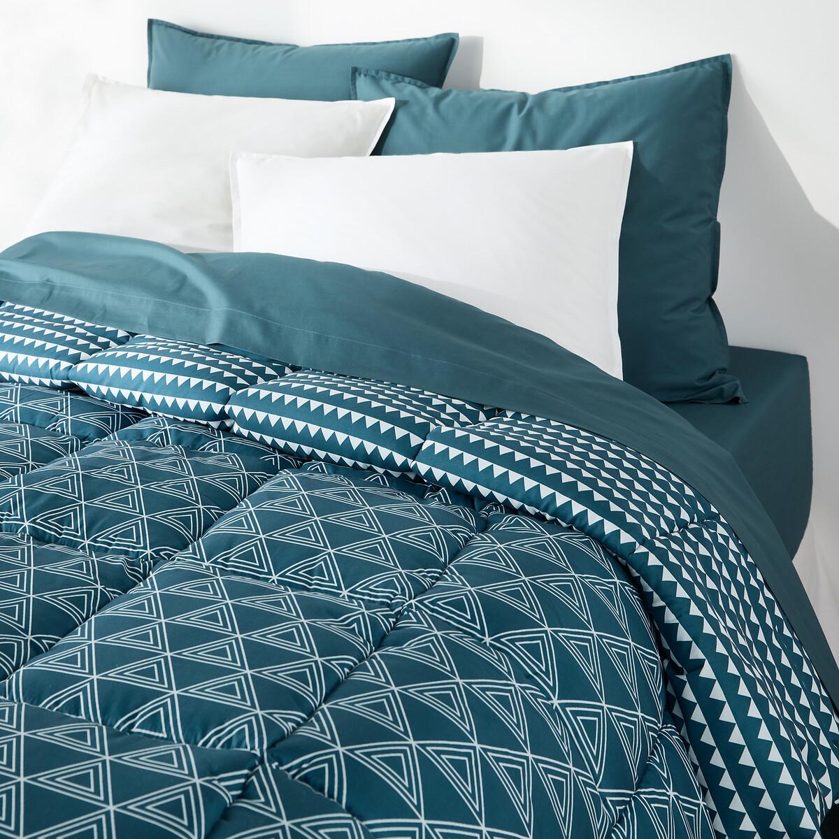 Ilka microfibre duvet. Choose a side to best suit your style: the Ilka duvet features geometric patterns in different scales on either side. Product Details • 100% recycled polyester microfibre cover • 100% recycled polyester • 100% recycled polyester 300 g/m2 padding • Patterned with different geometric motifs on either side • Edge-to-edge finish. Care Advice • Machine washable at: 40°C • By washing your laundry at 30°C instead of 40°C, you limit energy consumption. Dimensions • 140 x 200cm: Single • 220 x 240 : Double • Recycled polyester. Using recycled polyester is all about conserving resources and reducing waste.