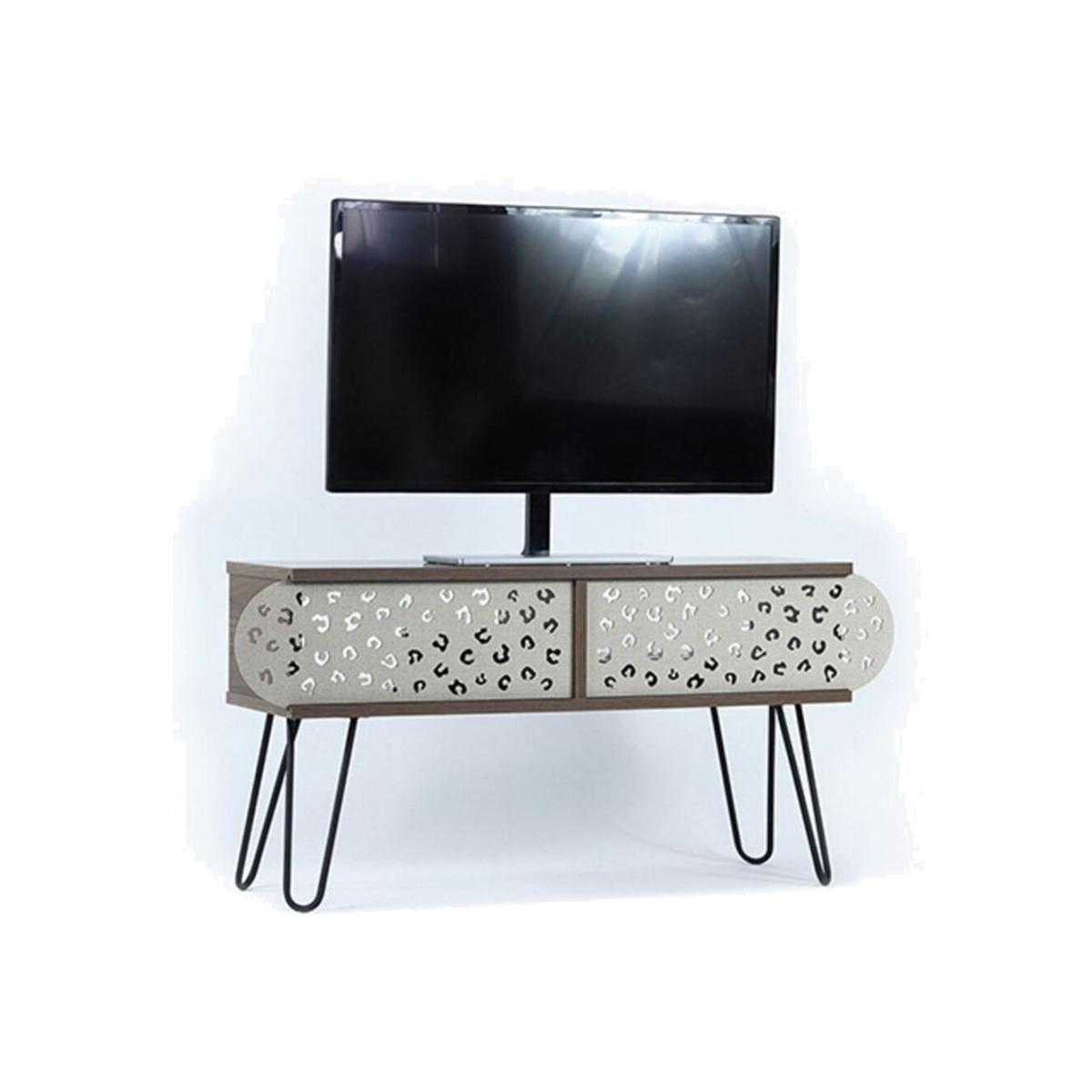 This TV stand reflects a style with its colours, materials, and simple design. There is no back panel on the TV bench, so you can manage the cables easily and freely. The TV stand offers storage compartments with elegant doors that open sideways.