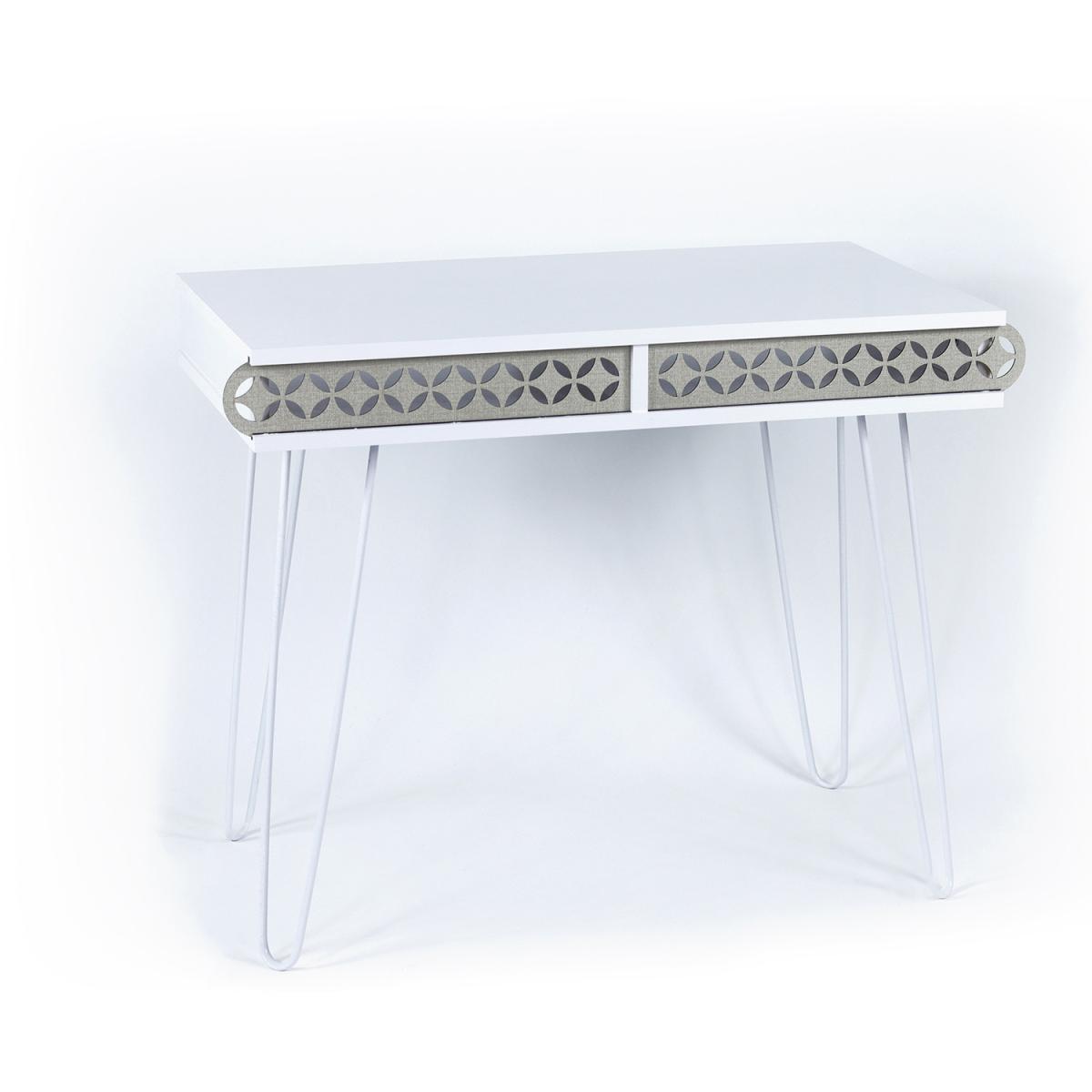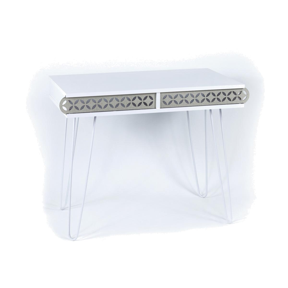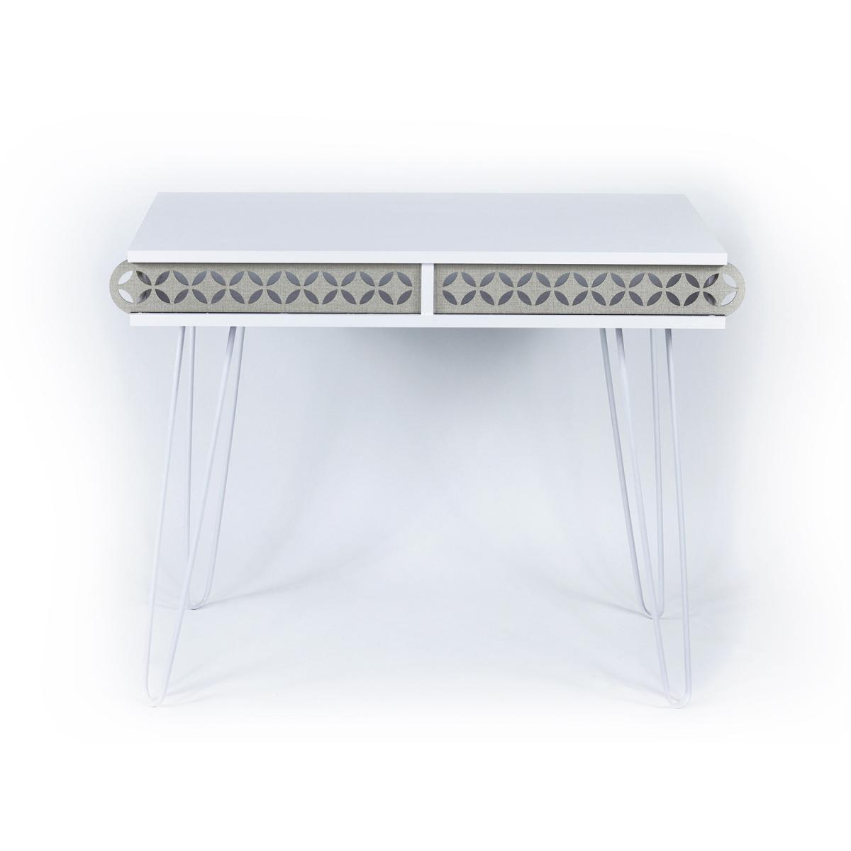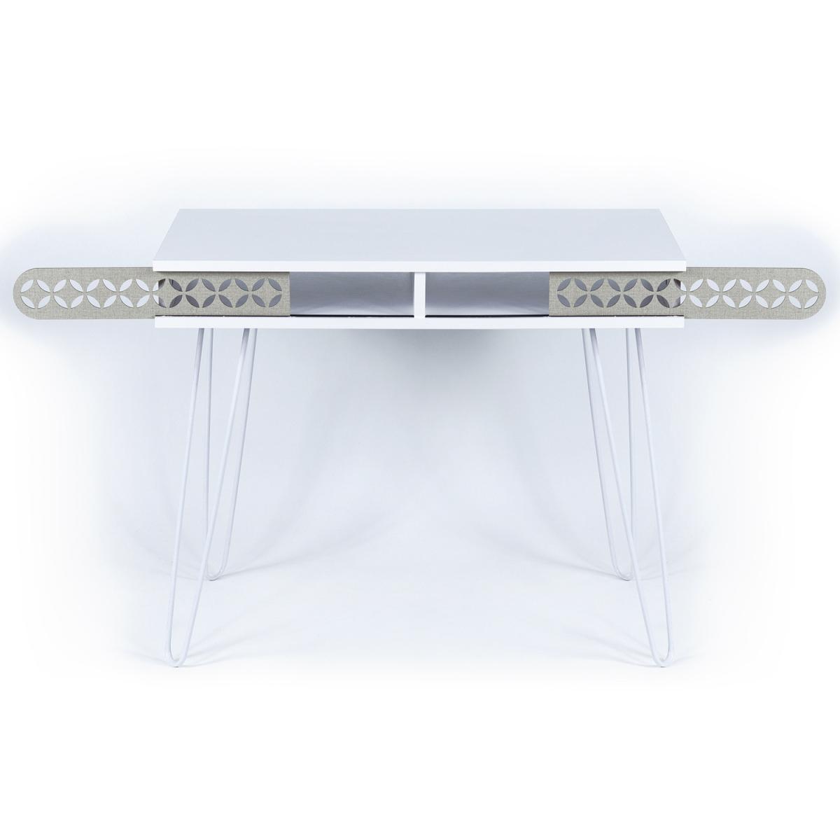I love this white desk for its clean, contemporary look with a touch of retro charm, thanks to the diagonal pattern on the drawers. It works particularly well in minimalist or Scandi-inspired interiors, adding a fresh and airy vibe without overpowering the space. Practical styling tips include pairing it with sleek, understated chairs and decorating with simple organisers or small plants to keep the surface clutter-free. Its neutral colour makes it versatile enough to sit comfortably in both home offices and bedrooms, and the subtle pattern on the drawers adds a bit of visual interest while maintaining a streamlined aesthetic.