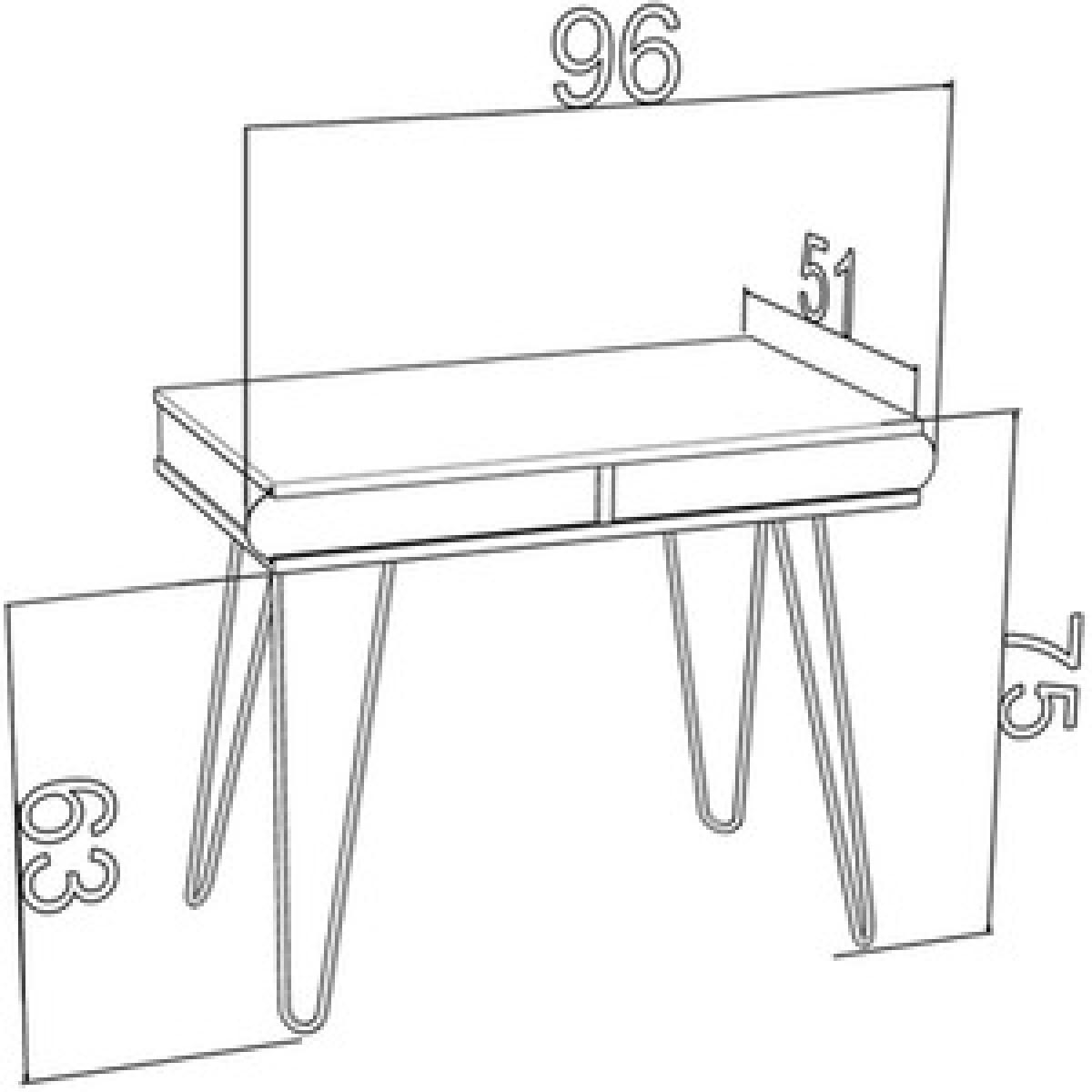 Space-saving is a breeze with this compact desk that is sized for small homes, apartments. Featuring a modern, wide-open design, this desk finished in a walnut wood look is equally functional as a computer desk or writing table. The table-top is perfect for a laptop tablet, a lamp, a notebook to get the job done.