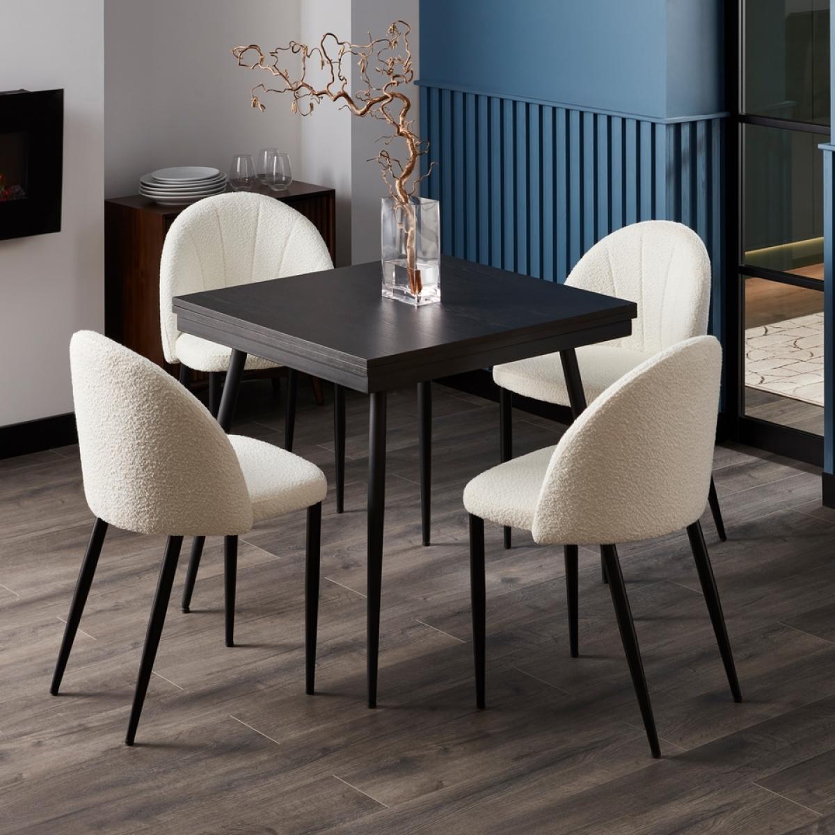 Go glam in the dining room with Illona. Full of charisma, the Illona dining table offers a contemporary chic style for your home. It boasts a wonderful black ash top with a Swiss edge chamfer to give this table edge. This combined with its striking splayed legs and dramatic black finish give Illona its bold personality. You can double your dining space in an instance by flipping the top over; taking this table from a 4 to a 6-seater. Scale down for cosier dinners and extend out for that big Sunday lunch. Host a lavish dinner party or enjoy evening drinks with friends at this sleek number.