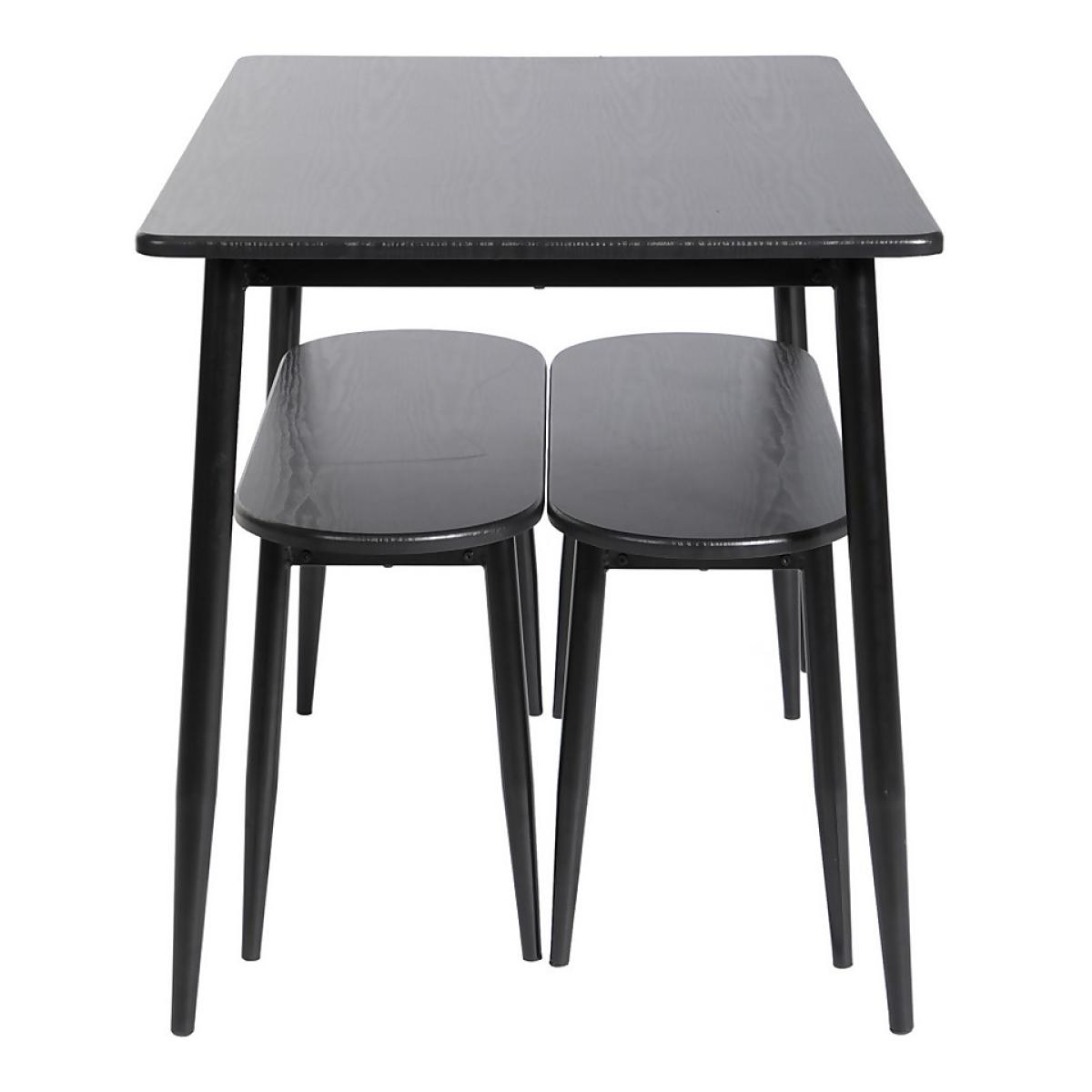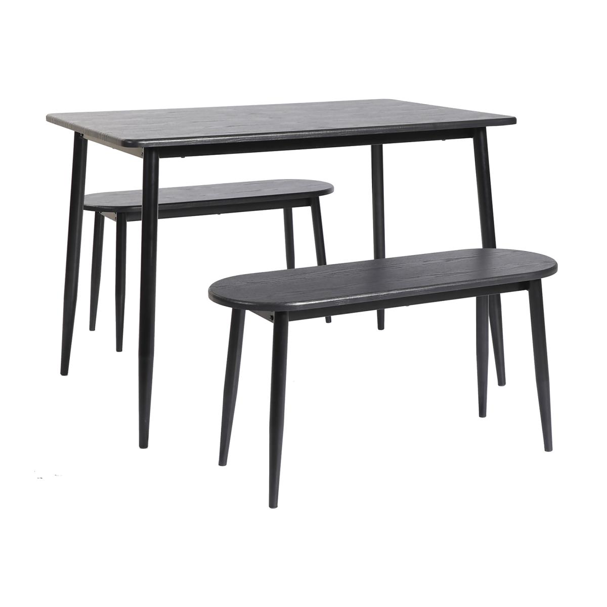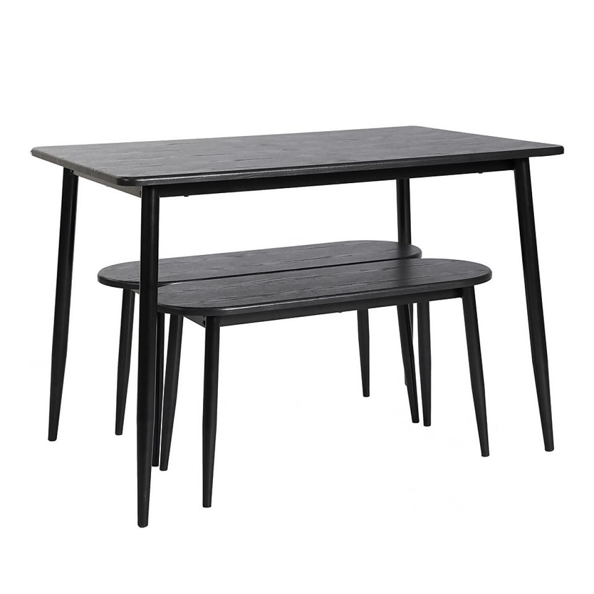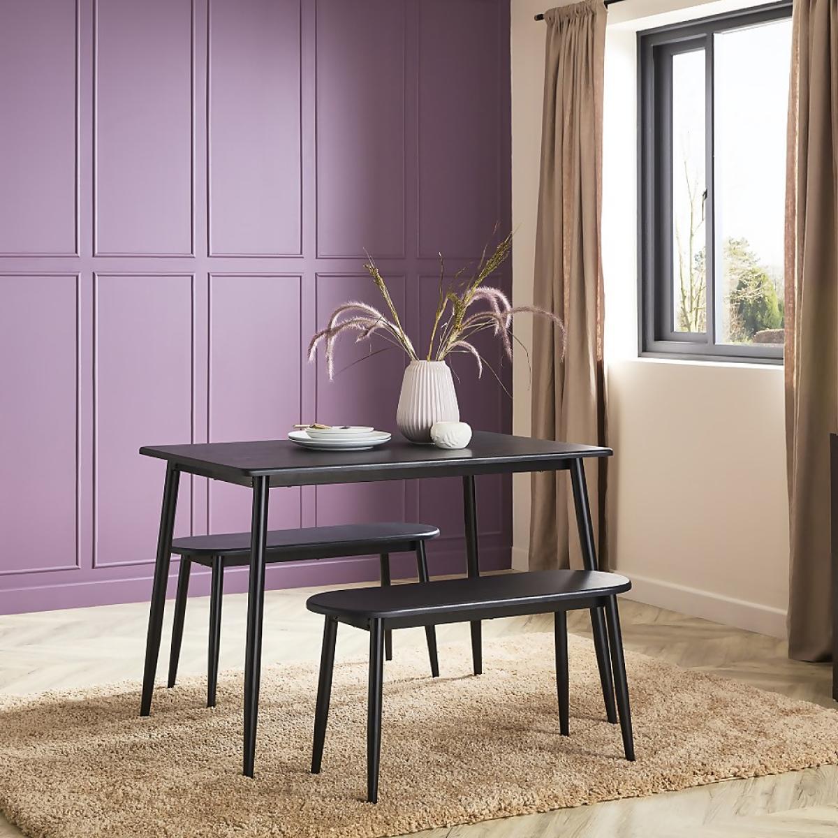 Go glam in the dining room with Illona. Full of charisma, the Illona dining table and benches offer a contemporary chic style for your home. The dining table and dining benches boast a wonderful black ash top with a Swiss edge chamfer, giving this dining set its edge. To help save you space in your dining room, the Illona benches sit completely underneath the table when not in use. This combined with its striking splayed legs and dramatic black finish give Illona its bold personality. Host a lavish dinner party or enjoy evening drinks with friends at this sleek number.