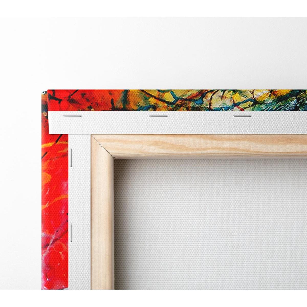 Canvas printed on coated polyester canvas. Mounted on to a 44mm box frame, ready to hang.