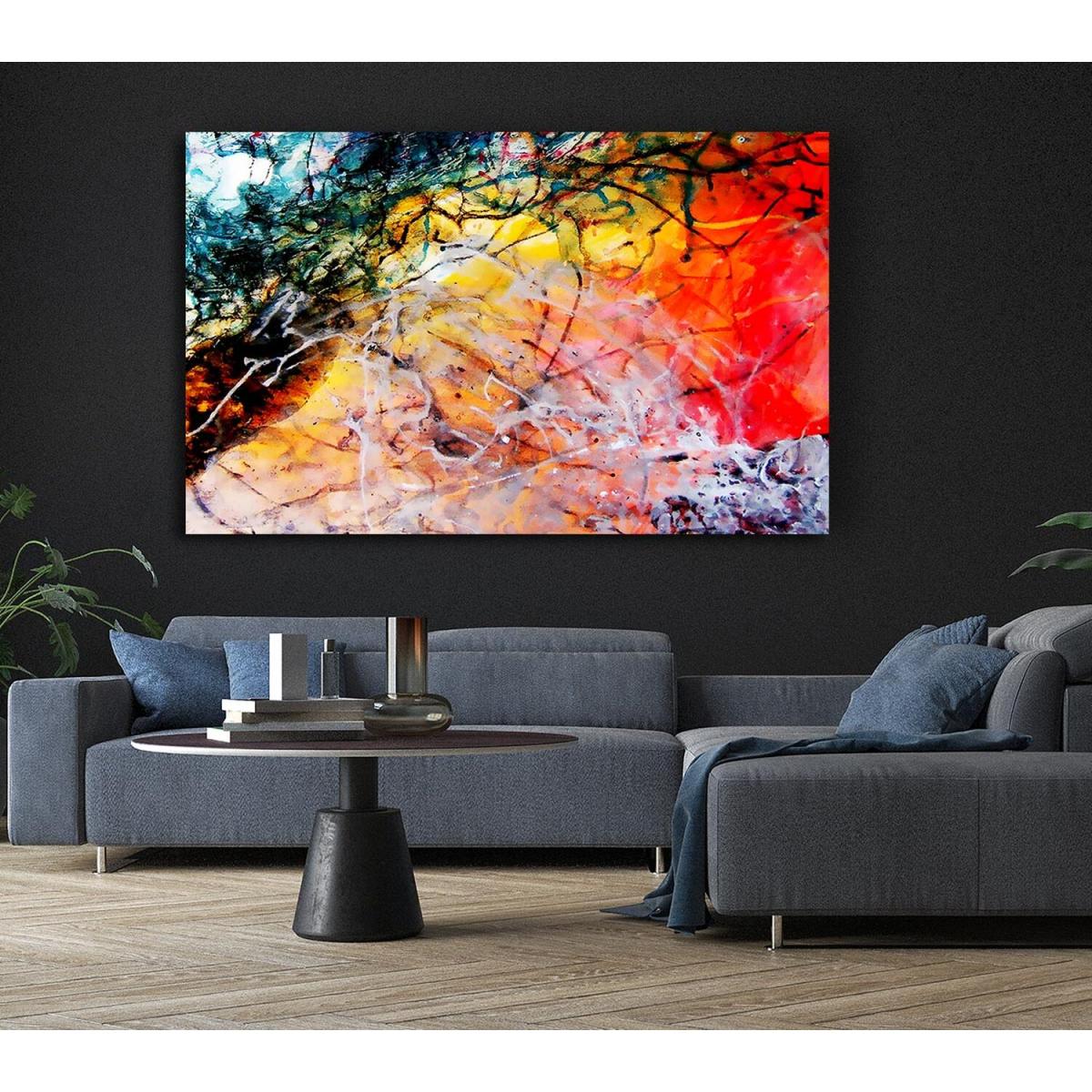 I love this rainbow trees canvas print for bringing a cheerful pop of colour to a variety of interiors. Its vibrant yellows and dynamic abstract design work particularly well in contemporary or eclectic spaces, adding visual interest without overwhelming the room. To style it effectively, hang it at eye level as a focal point above a neutral sofa or console table, paired with simple accessories in coordinating colours to keep the look cohesive. It can also serve as a colourful backdrop in a minimalist setting to inject energy and personality. This piece is versatile and practical, providing a striking yet manageable statement that energises any living space.