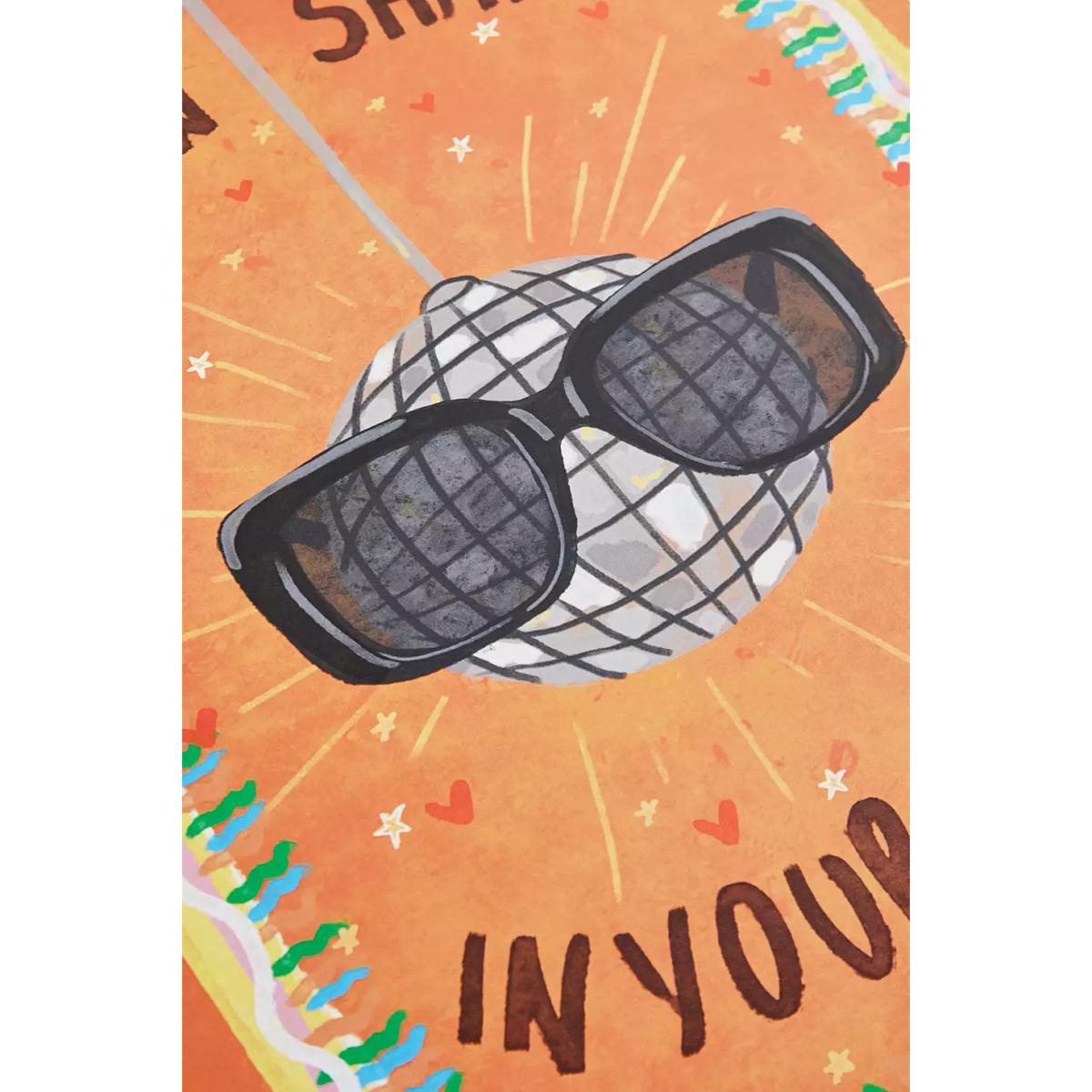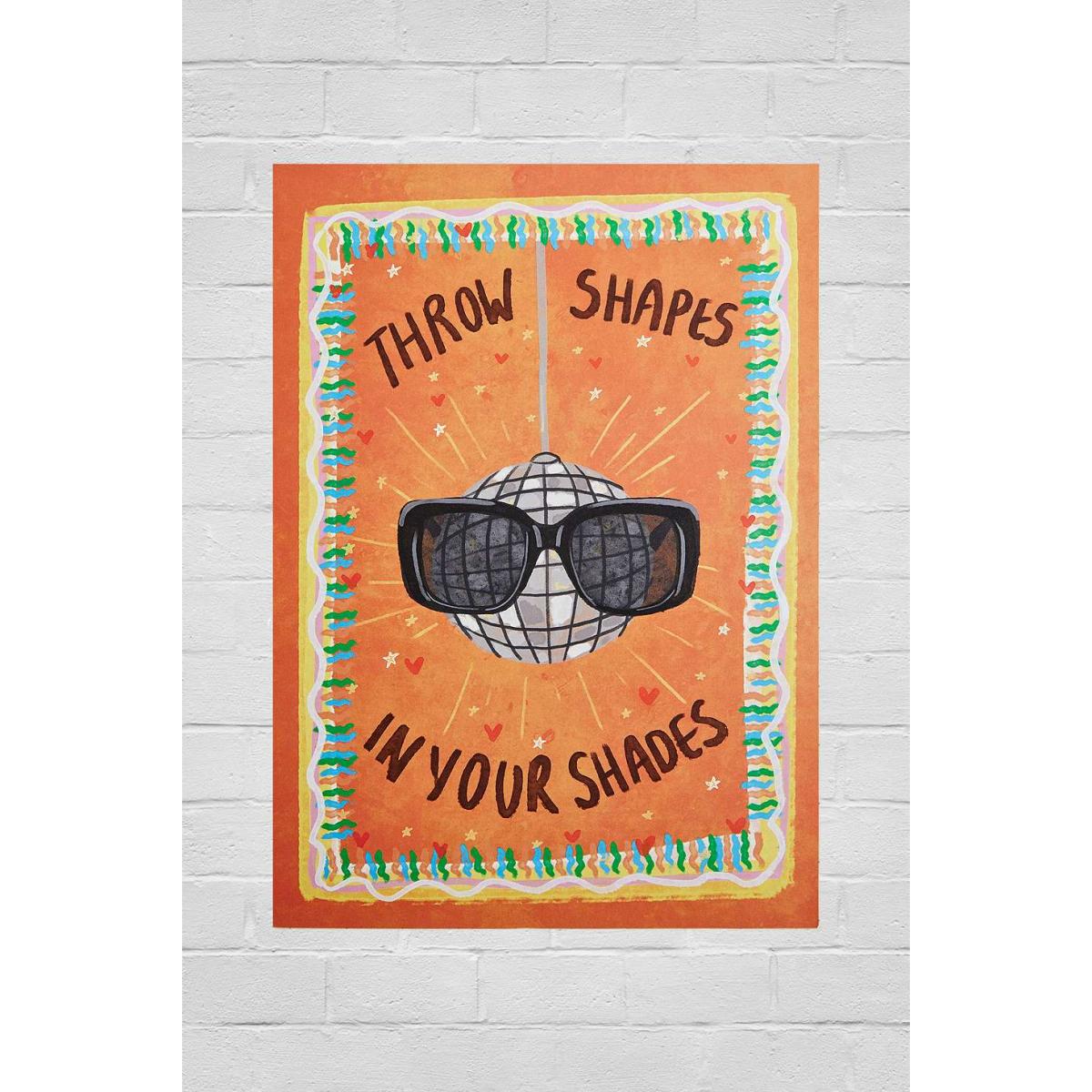 Channel kitchen disco energy with this Illustrated By Weezy print in your space. The illustrated print features a groovy border, a disco ball motif and a 'Throw shapes in your shades' print. **Content + Care** \- Paper \- Wipe clean **Size** \- 30cm x 40cm