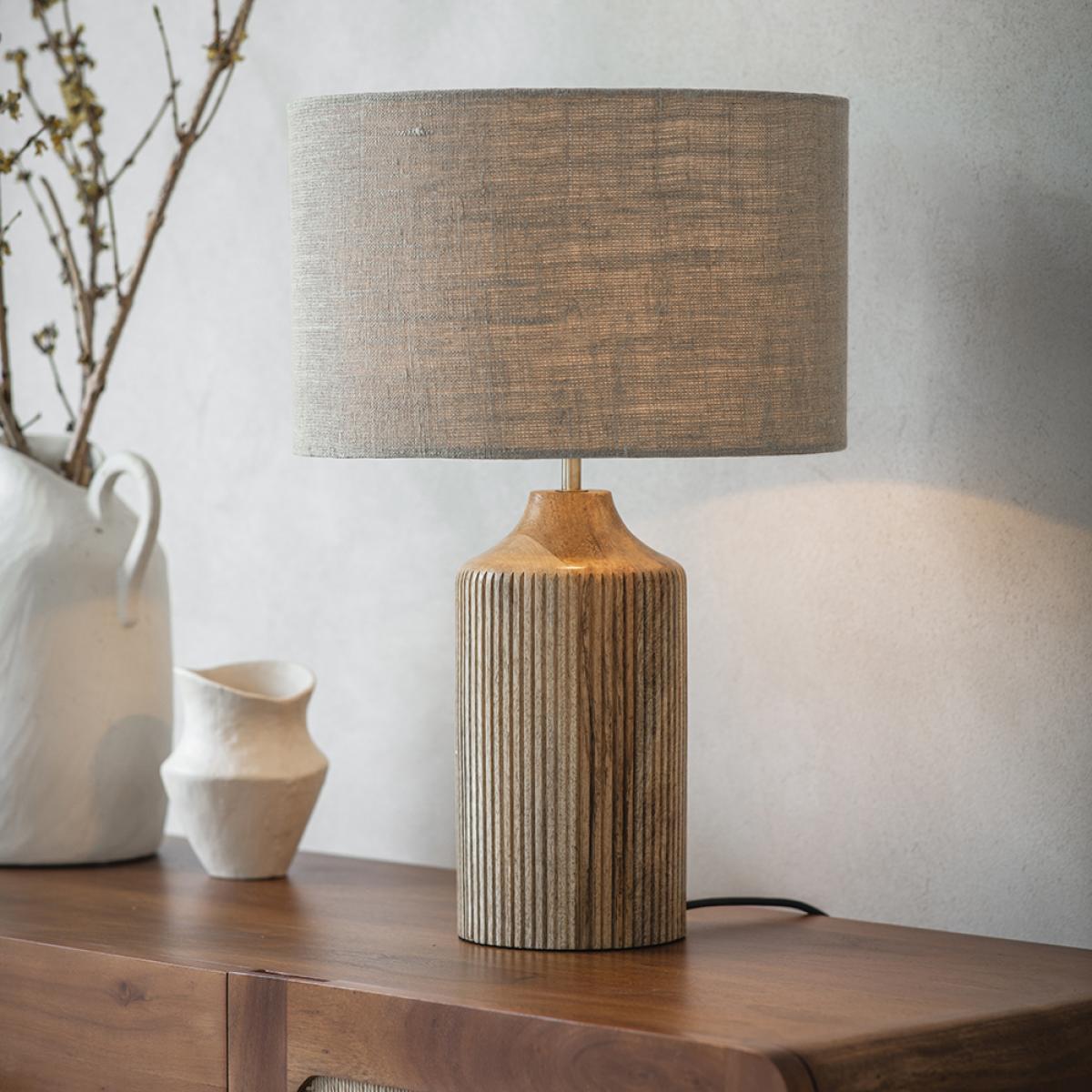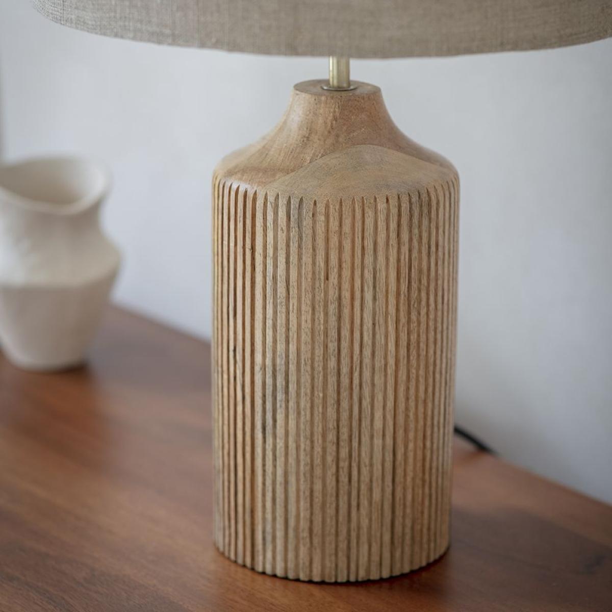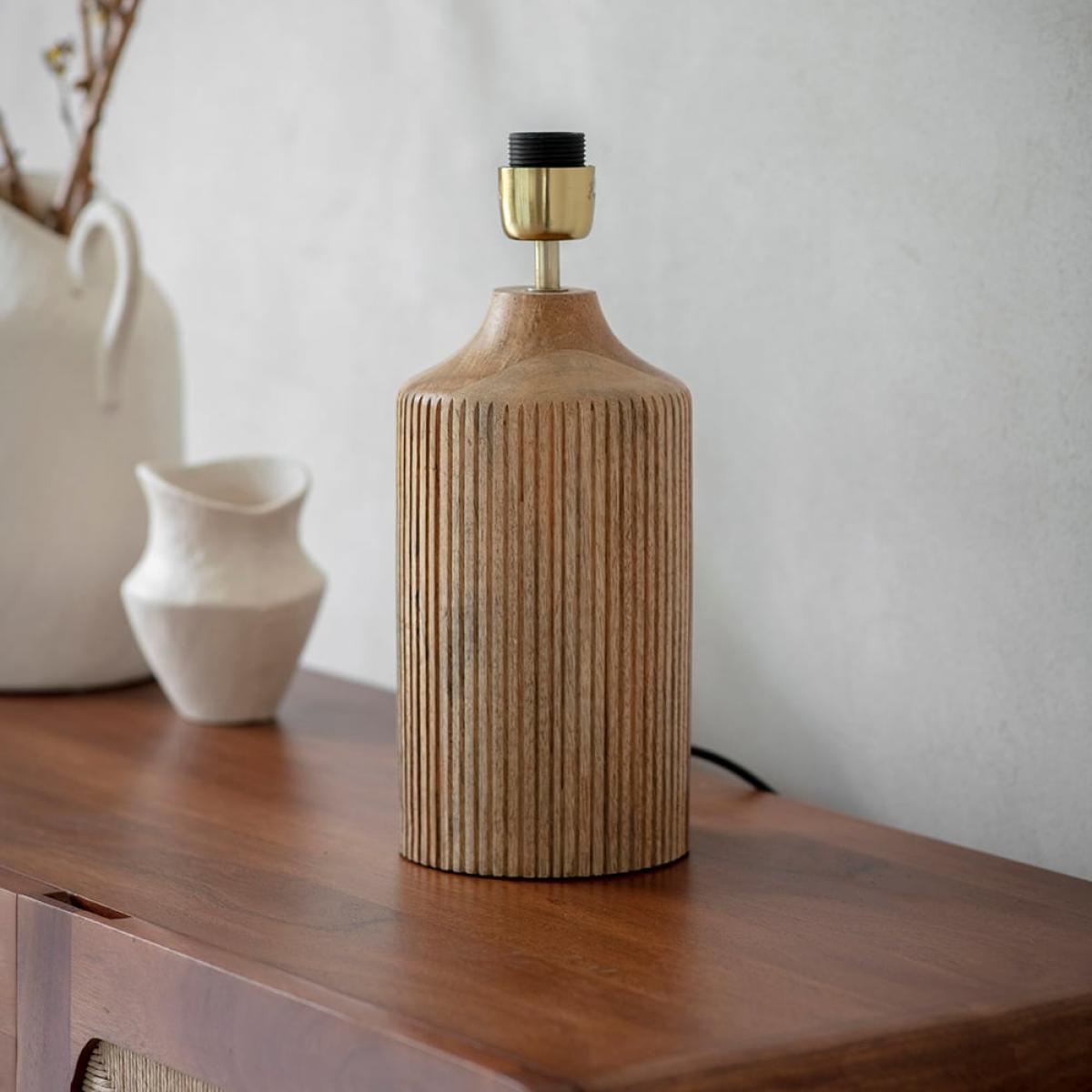 A sturdy and solid wooden table lamp base made from sustainable mango wood, our Ilsa Tall Table Lamp creates a soft glow to highlight a side table, sideboard or shelving. The solid mango wood design features hand crafted vertical grooves for an on-trend fluted, textured look while the natural and organic design looks great teamed with a neutral lamp shade for effortless chic. The Ilsa Tall Table Lamp is a sustainable solution to table lighting with its solid mango wood design. Perfect for creating a soft, warm pool of light on a side table, sideboard, windowsill or shelving, it looks stunning in the living room, dining area, open-plan space, hallway, landing, bedroom or guest room. The hand-crafted vertical grooves add textural interest to the table lamp, highlighting the organic and natural character of the wood. Ideal for both contemporary and classic decors, this table lamp looks stunning in all interiors while providing ambient and task lighting for reading, relaxing, entertaining or simply chilling out with the latest box set. Matching small ILSA Table Lamp and Small Pia Table Lamp also available. Lampshade is for illustration purposes only and is not included.