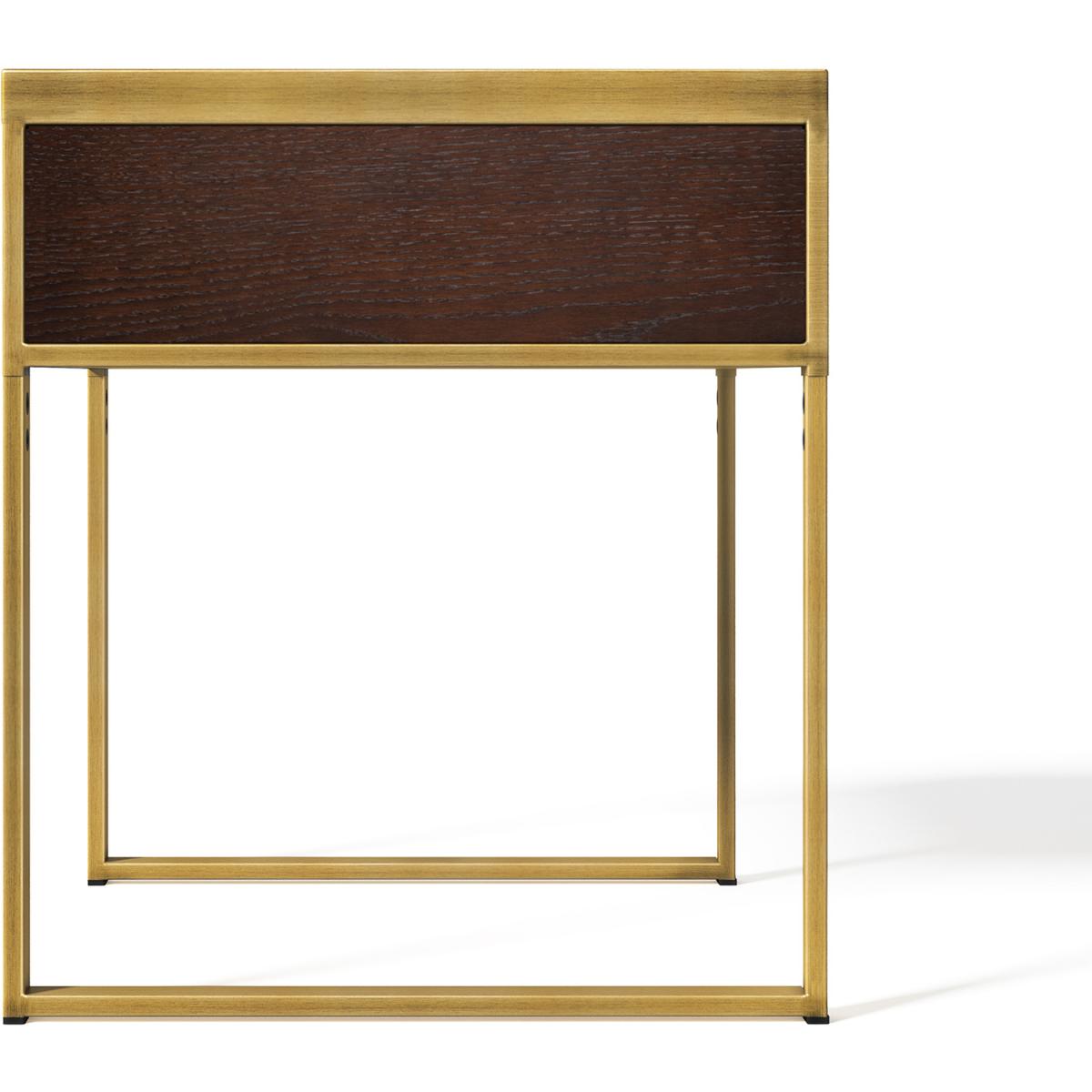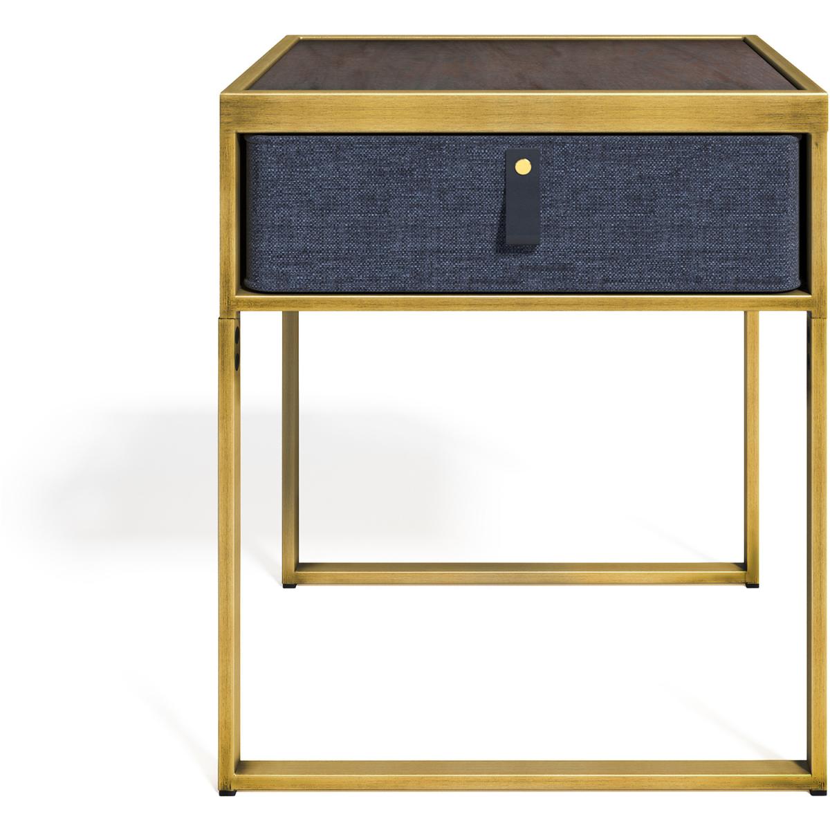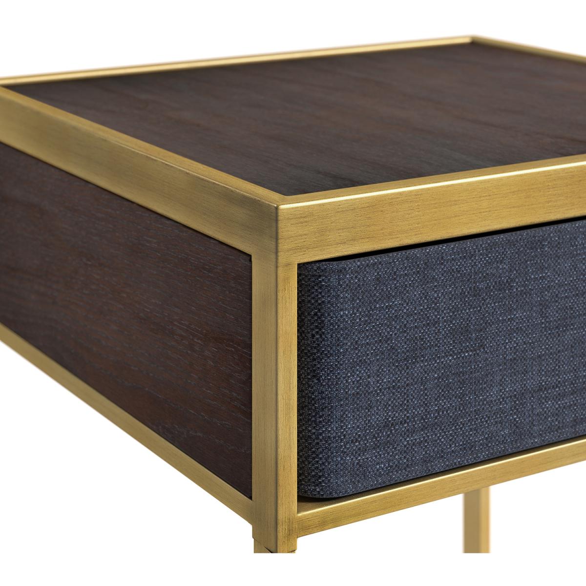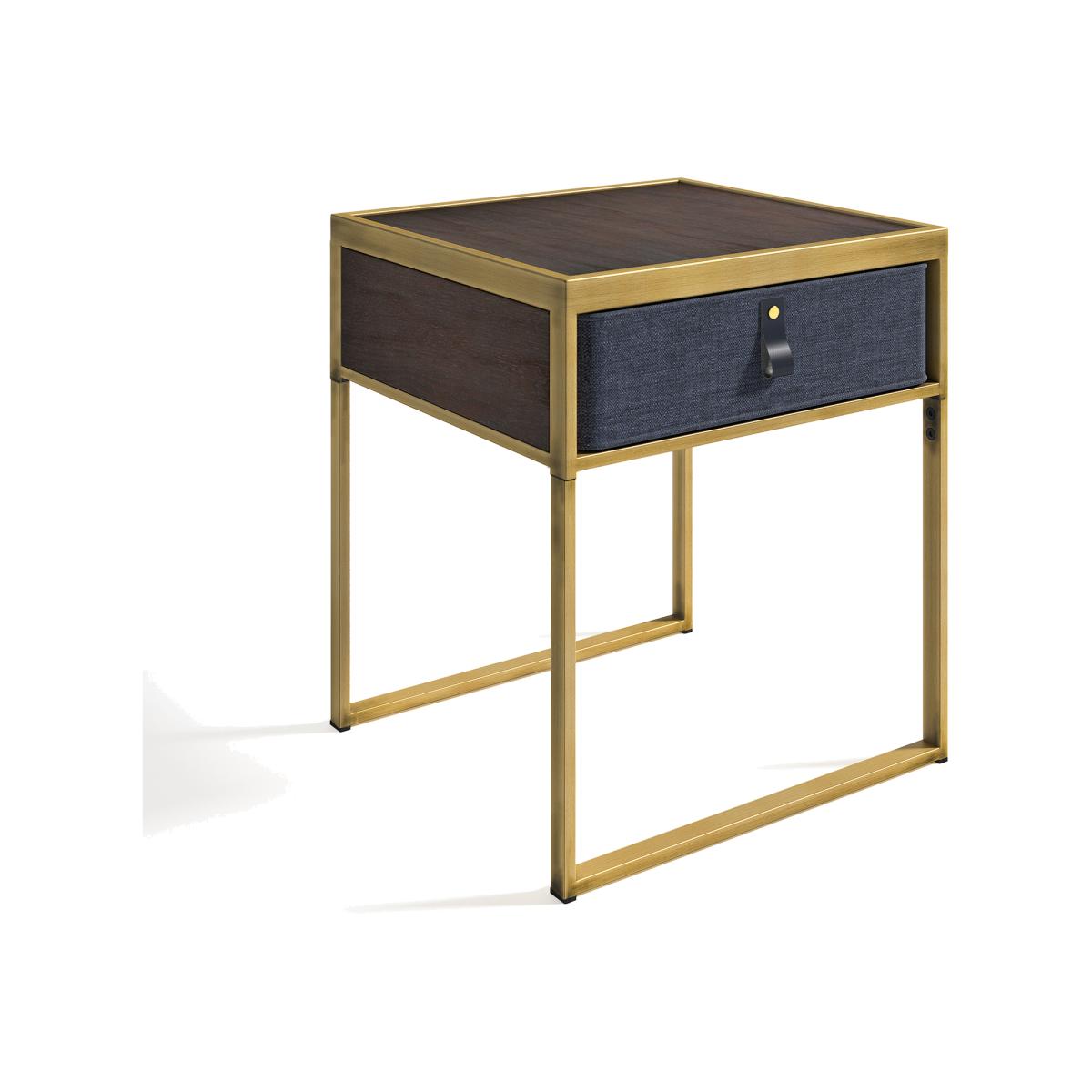 Traditional furniture meets modern glamour in the Ilsang Mixed Material Nightstand. Crafted to the highest standards, this bedside table comes in two different colorways. A red oak top and side veneer, a navy quilted drawer and steel metal legs with an antique gold brushed finish for a unique look. A walnut veneer top, taupe quilted drawer and black steel legs for a look that brings luxury to the bedroom. The spacious top and drawer offer plenty of room for all your bits and bobs, with a sturdy metal interior and a leather looped drawer handle for easy opening. Assembling this bedside table is easy as all parts, tools and instructions are packed in a box and shipped straight to your door. The search for a stylish, elegant bedside table is over.