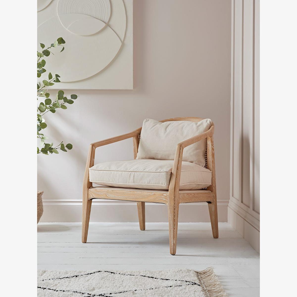 With enough neutral appeal to grace any setting, our Ilse occasional chair has a traditionally shaped blonde wood frame. Its simplicity wonderfully combines with cane webbing for added character, while not detracting from the minimalist style. As part of our New Neutral collection, pair with our Lusa cushion for the ultimate cosy set up,