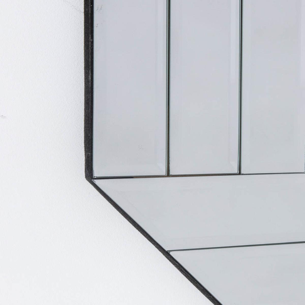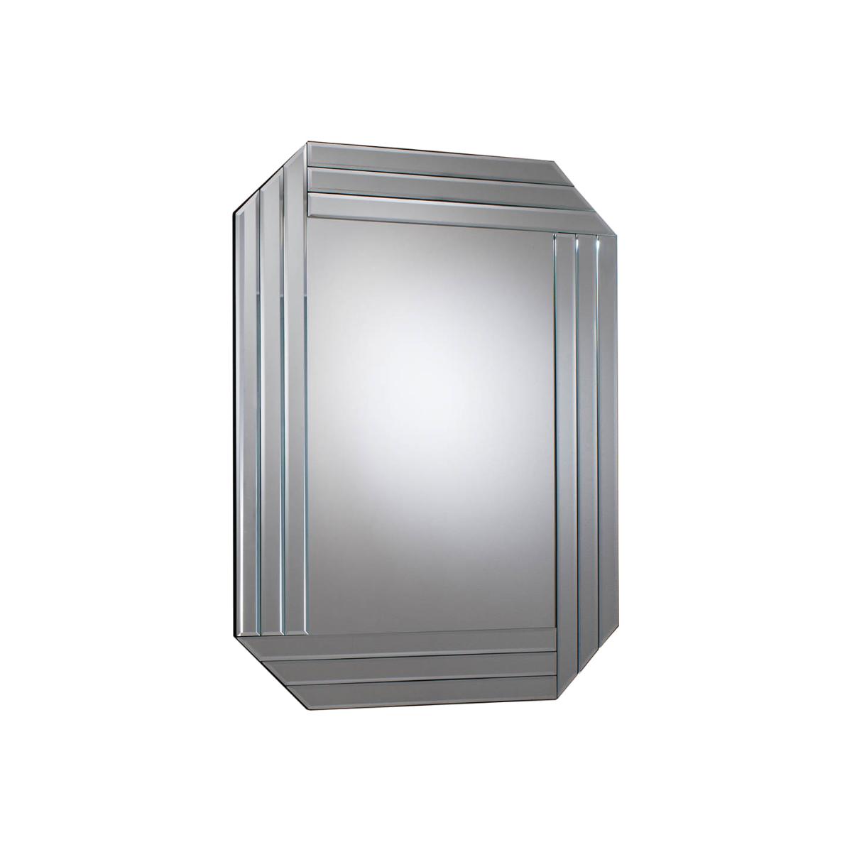 A decadent ‘cant corner’ design mirror with a bevelled triple strip frame. Shape: Rectangle. Material: Glass, MDF. Colour/Finish: Silver. Mount Type: Wall.