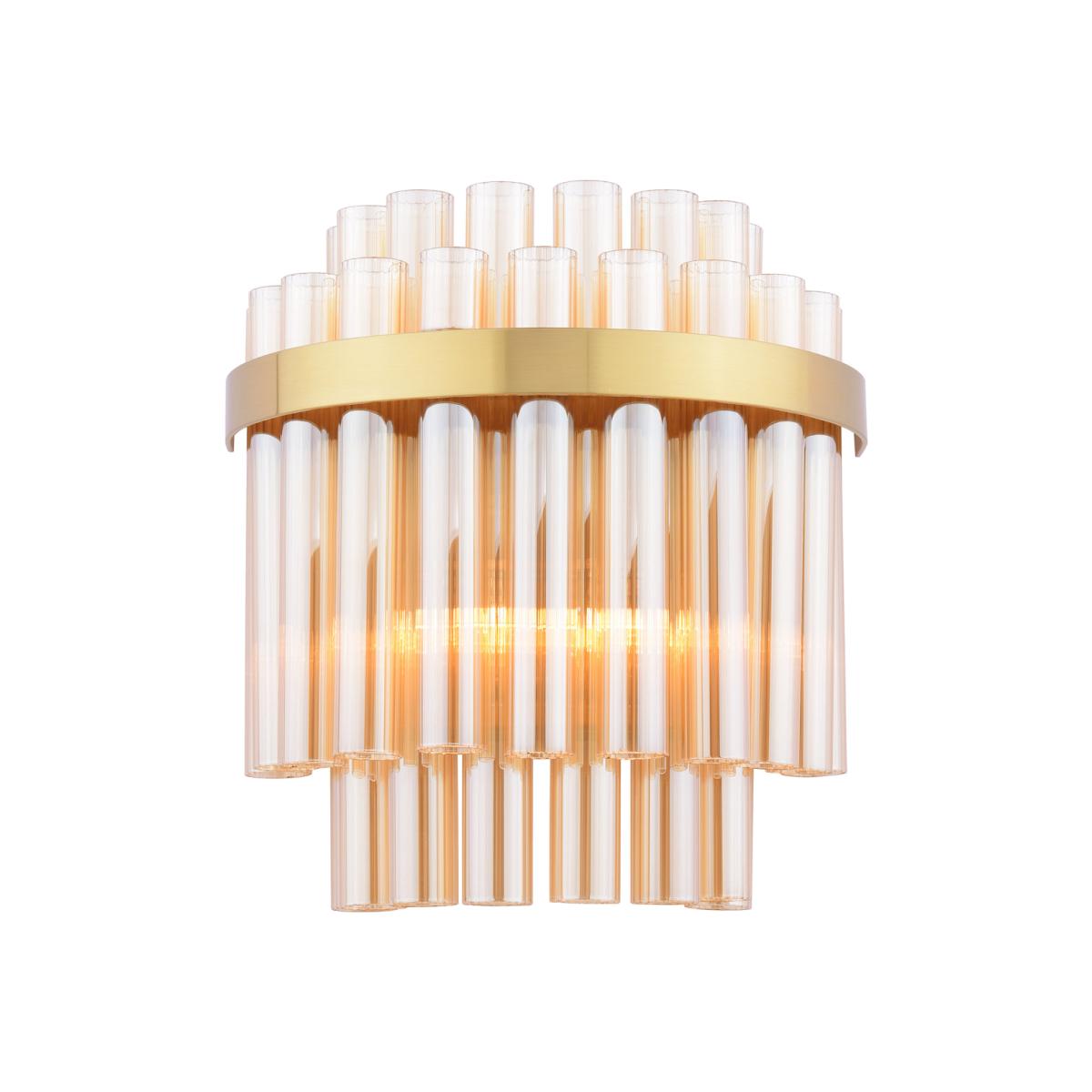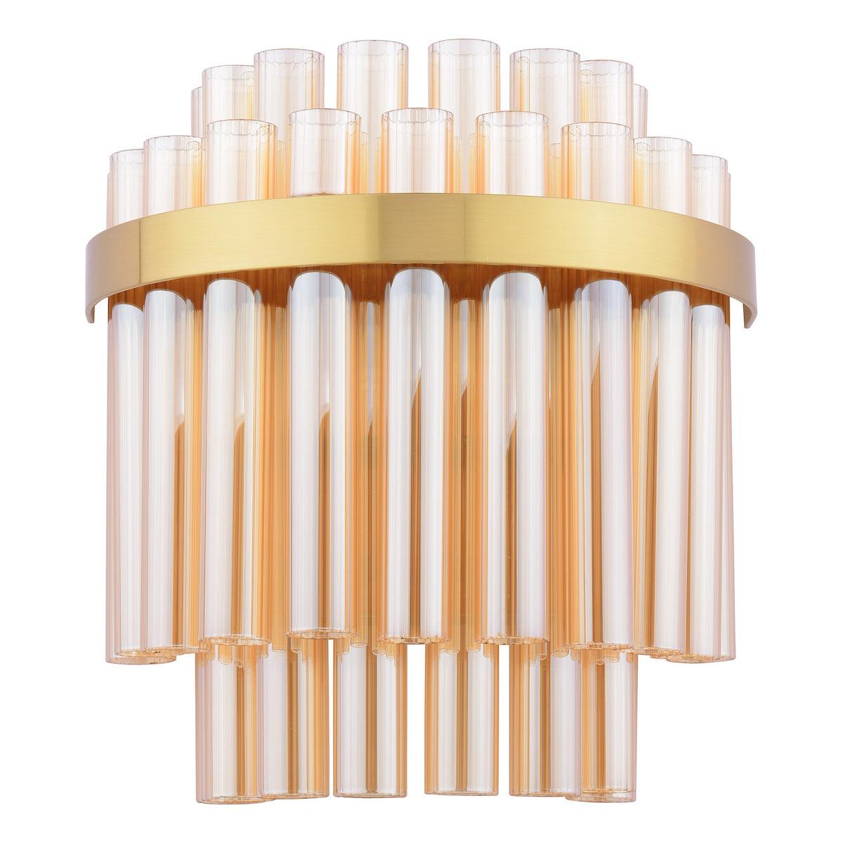 Introducing the , a perfect complement to the Imani pendant and a stunning addition to your interior design scheme. Crafted with the same meticulous attention to detail, this contemporary wall light features oversized ribbed glass rods in warm amber encircled by a bronze frame. The polished gold interior creates an illusion of the glass floating effortlessly, adding a touch of modern elegance to your space. With its ability to seamlessly blend with the Imani pendant, it's a versatile choice for various rooms. The Imani Wall Light is designed for direct wall mounting.