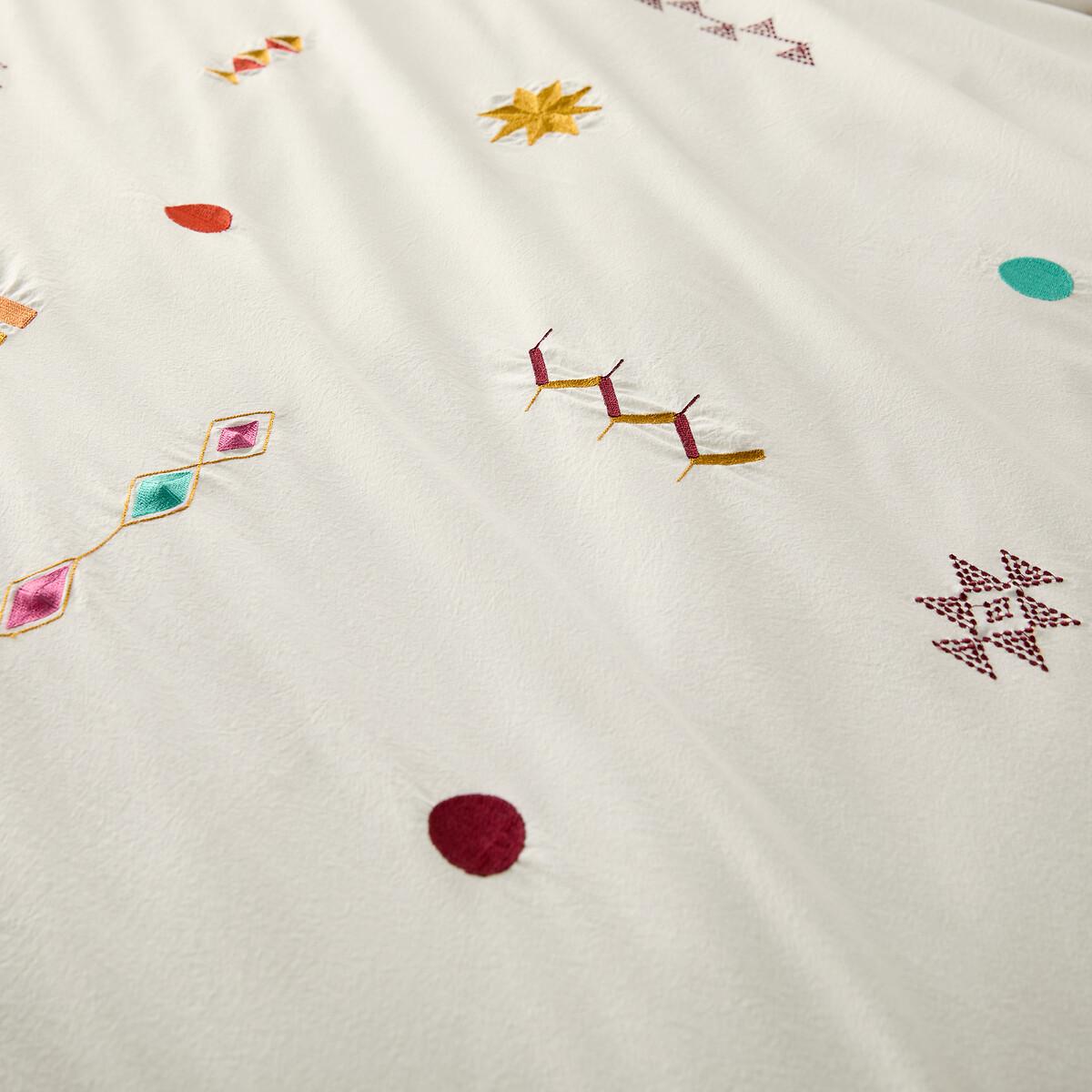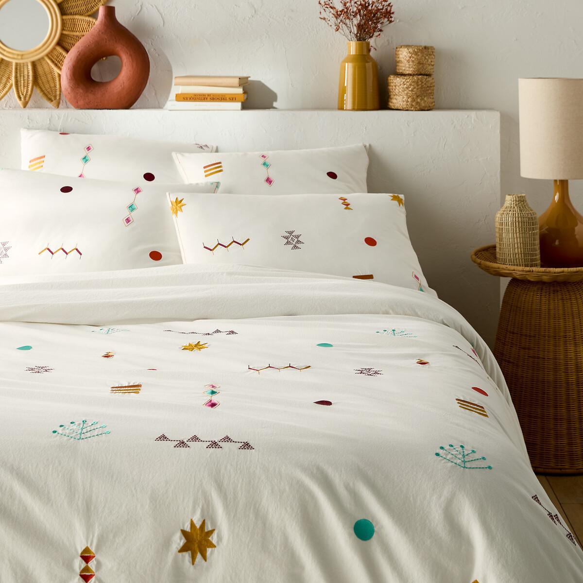 Inspired by traditional design, a play of small multicoloured embroideries adorn the Imani duvet cover. The patterns bring a touch of vibrant colour to the bedroom. Created by La Redoute Interiors. Cotton is part of our daily lives. We love it for its suppleness and softness. Easy Care, it is ideal for the beds of young and old alike!Product Details • 100% cotton • 144 thread count • Vintage cotton • Front: geometric embroidery details / Back: plain • Straight buttoned hem Match this item with the rest of the bedding in the range for a stylish bedroom. And you can mix and match it with different colours and styles from our other bedding ranges when you want to change things up and create your own unique look. Care Advice • Machine washable at 40°CSizes • 140 x 200cm: Single • 200 x 200cm: Double • 240 x 220cm: King • 260 x 240cm: Super King • OEKO-TEX® Standard 100. Standard 100 certification by OEKO-TEX® tests textile products for harmful substances via an independent, international label.