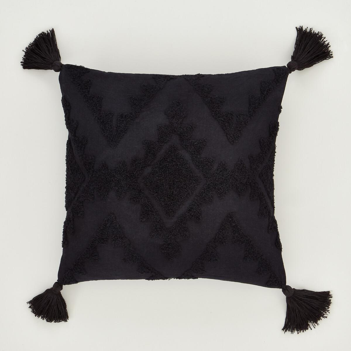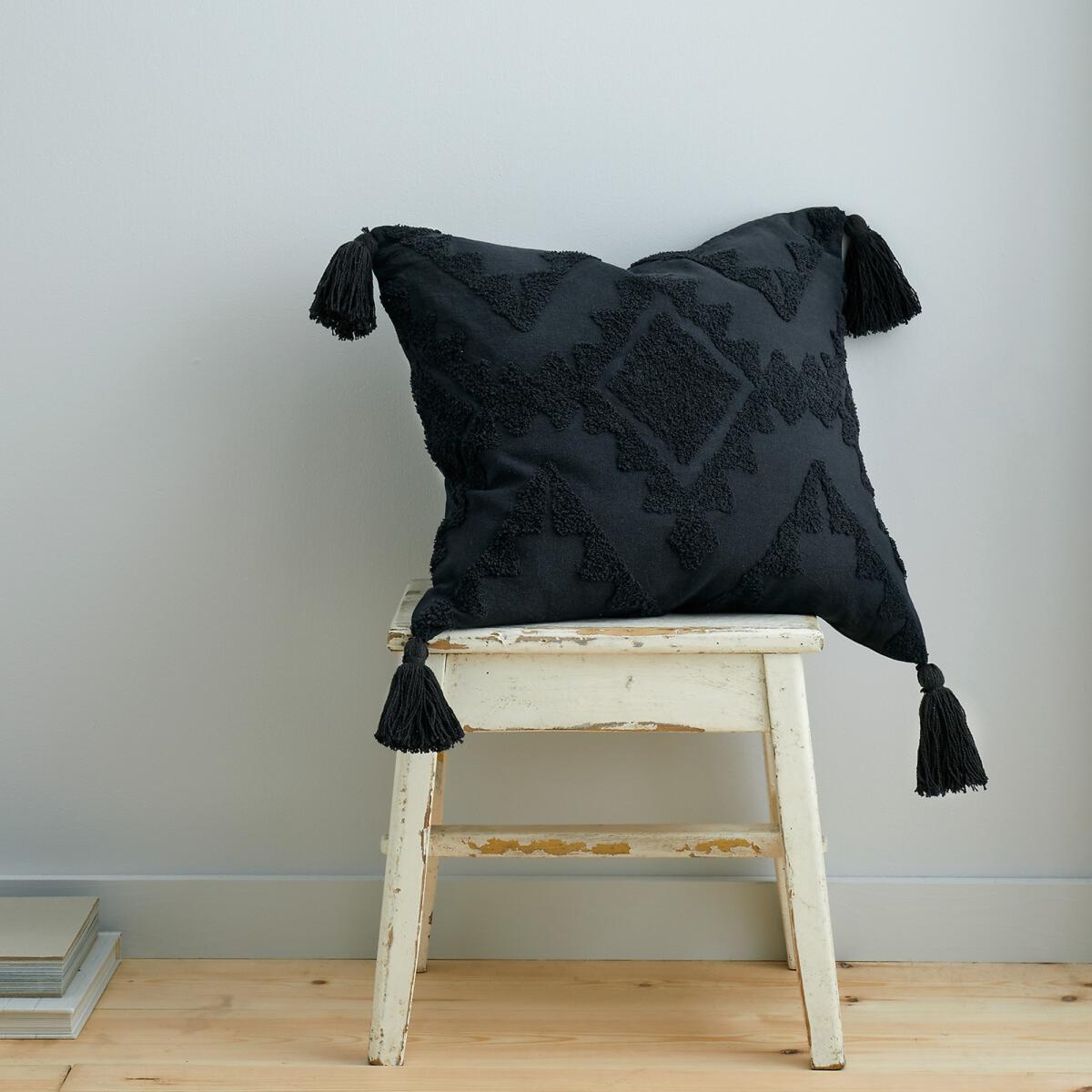 This inspired collection of eclectic designs is a fusion of influences from across the world with a modern interpretation of artisan motifs and timeless textures. This Navajo-inspired geometric tufted cushion showcases mountains of texture, accompanied by tasselled corners and on-trend colouring, to create the perfect well-travelled aesthetic. This cushion has a 100% Polyester inner and a zipper fastening. Crafted from 100% Cotton. Machine Wash at 30 Degrees. Do not place on light colour furnishings, due to the nature of this product some fibre may shed. This product will be dispatched by one of our trusted suppliers. You’ll be contacted by their selected courier about your delivery.