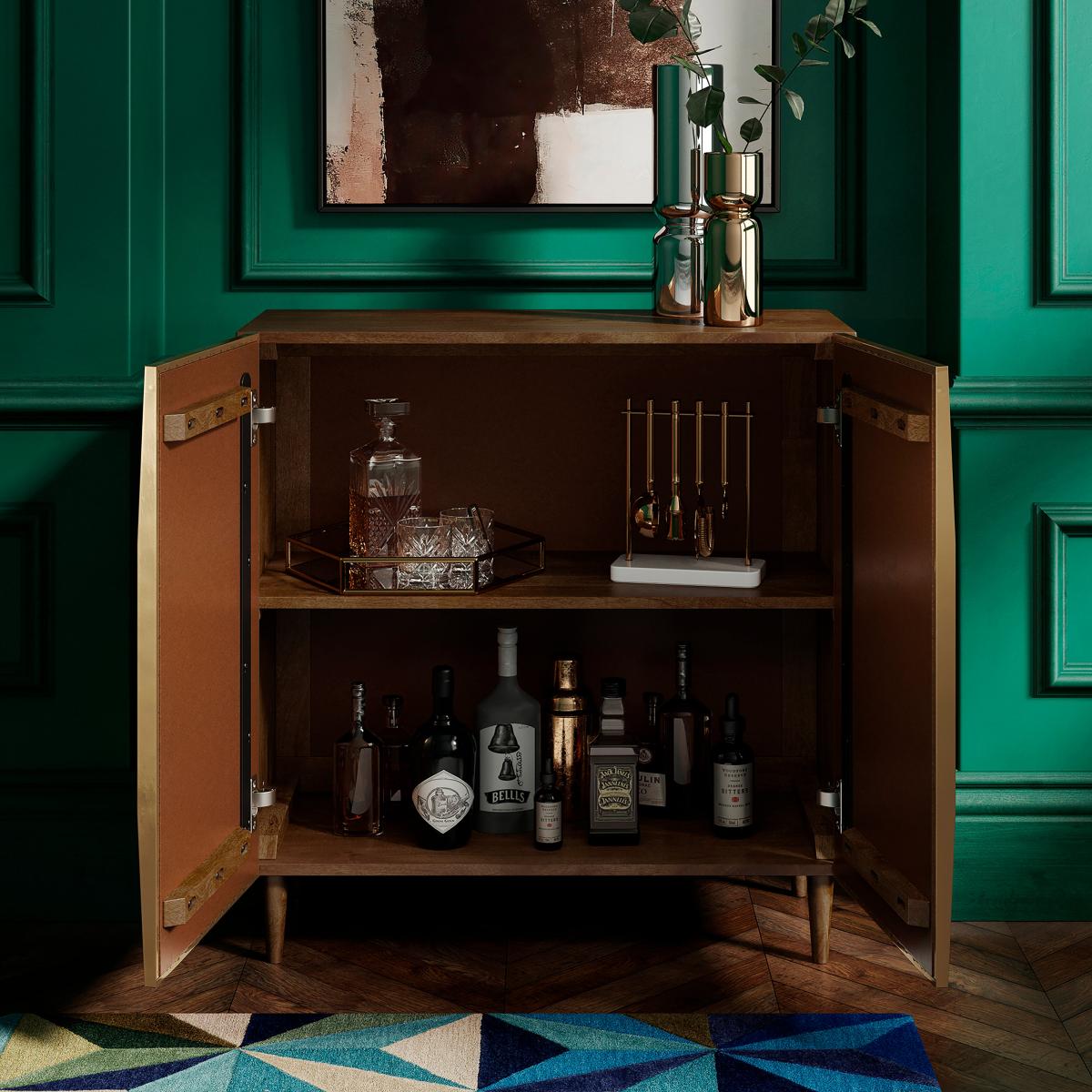I love this little sideboard because of its bold, architectural design and warm mango wood finish, which adds a touch of natural texture to any room. It works particularly well in eclectic, contemporary, or mid-century inspired interiors, where its distinctive pattern can be a statement piece. Practical styling tips include keeping it simple with a few curated accessories like minimal vases or statement books to avoid visual clutter. It’s ideal for storing dinnerware in a dining room or media accessories in a living space, making it both functional and stylish. To keep it looking its best, positioning it against a neutral or coloured wall can highlight its beautiful craftsmanship without competing with other design elements.