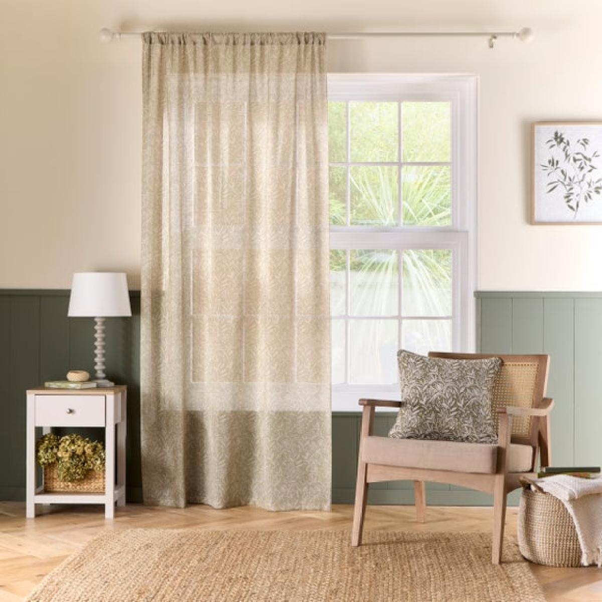 * Premium polyester and linen blended composition * Elegant, Arts and Crafts inspired design * Slot Top header * Dry Clean only * Corresponding items available Inspired by the romantic intricacy of the Arts and Crafts era, the Imogen Slot Top Voile Panel combines delicate print detail with modern functionality. The lightweight blend of polyester and linen allows natural light to filter through while still offering a sense of privacy. Featuring a graceful floral design in soft, heritage tones, this panel enhances windows with gentle elegance. The easy-to-install slot top header creates clean lines and a relaxed drape, perfect for bedrooms or living spaces that call for subtle sophistication. Coordinate with the Imogen curtain and cushion for a harmonised interior scheme. Dry clean only.