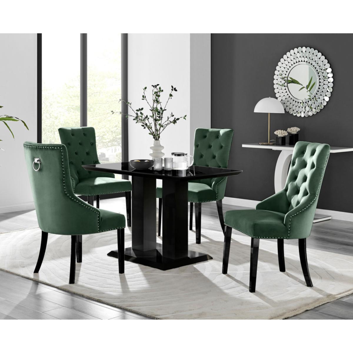 With its unique pillared structure and high gloss surface, the Imperia dining table is a modern but classically elegant design, for those looking for the perfect new addition to their home. Comfortably seating up to 4 guests with its generous 120 x 70 cm surface, the Imperia 4 dining table is perfect for smaller families that still want the impeccable design on a grander scale. The Belgravia knocker chair is the ultimate dining chair opulence with its scoop-back design that allows you and your guests to lean back and feel supported by the wrap-around arms. Stylish Chesterfield-inspired button tufting and diamond stitching add to the modern chic look. The design gives us straight lines and soft padded curves contemporary and comfortable.