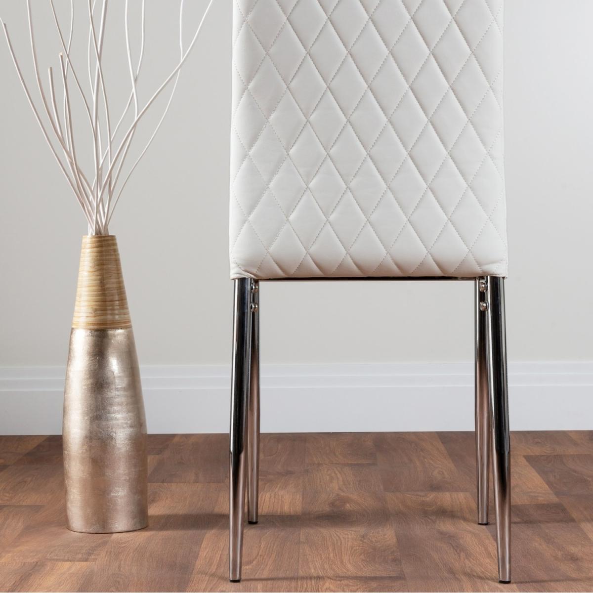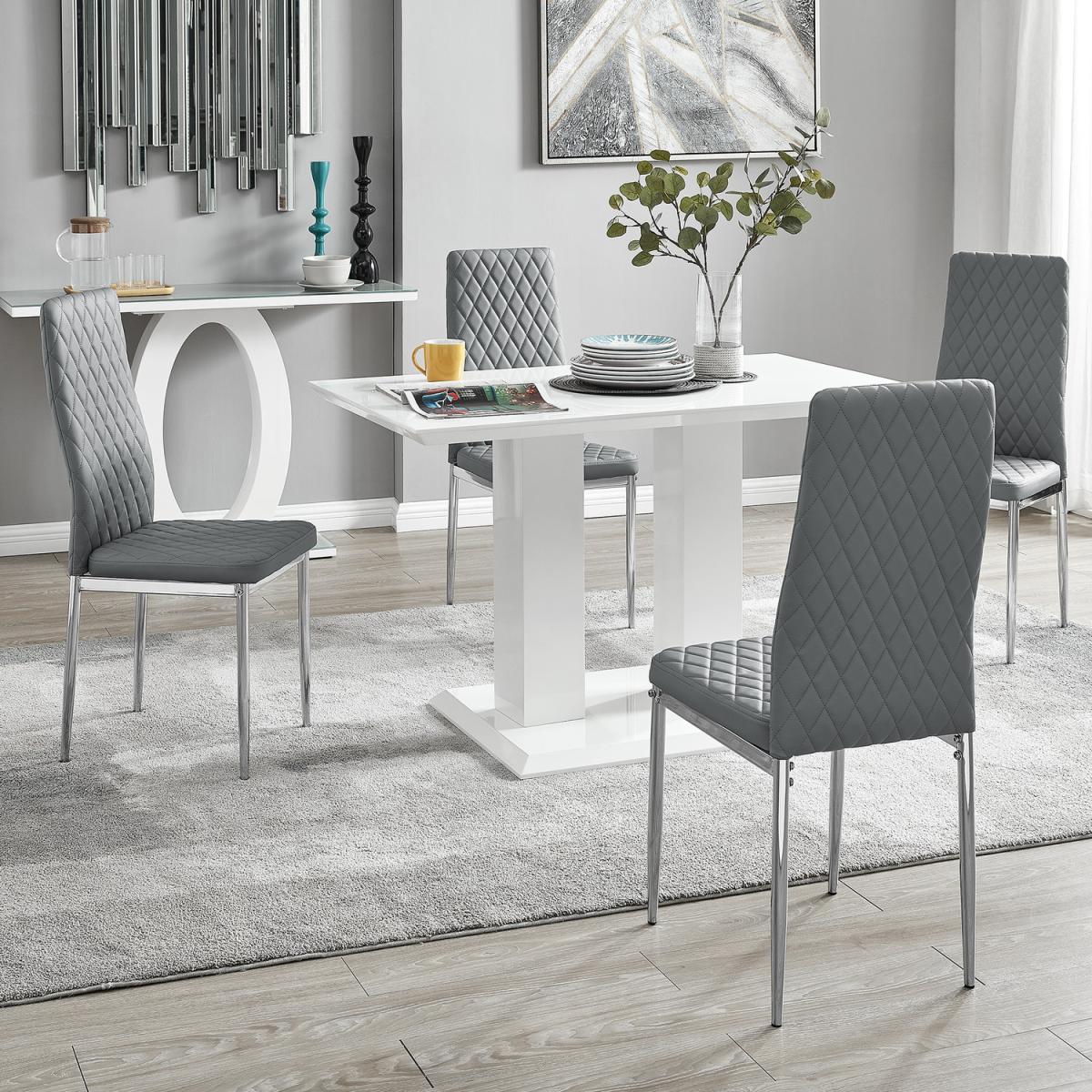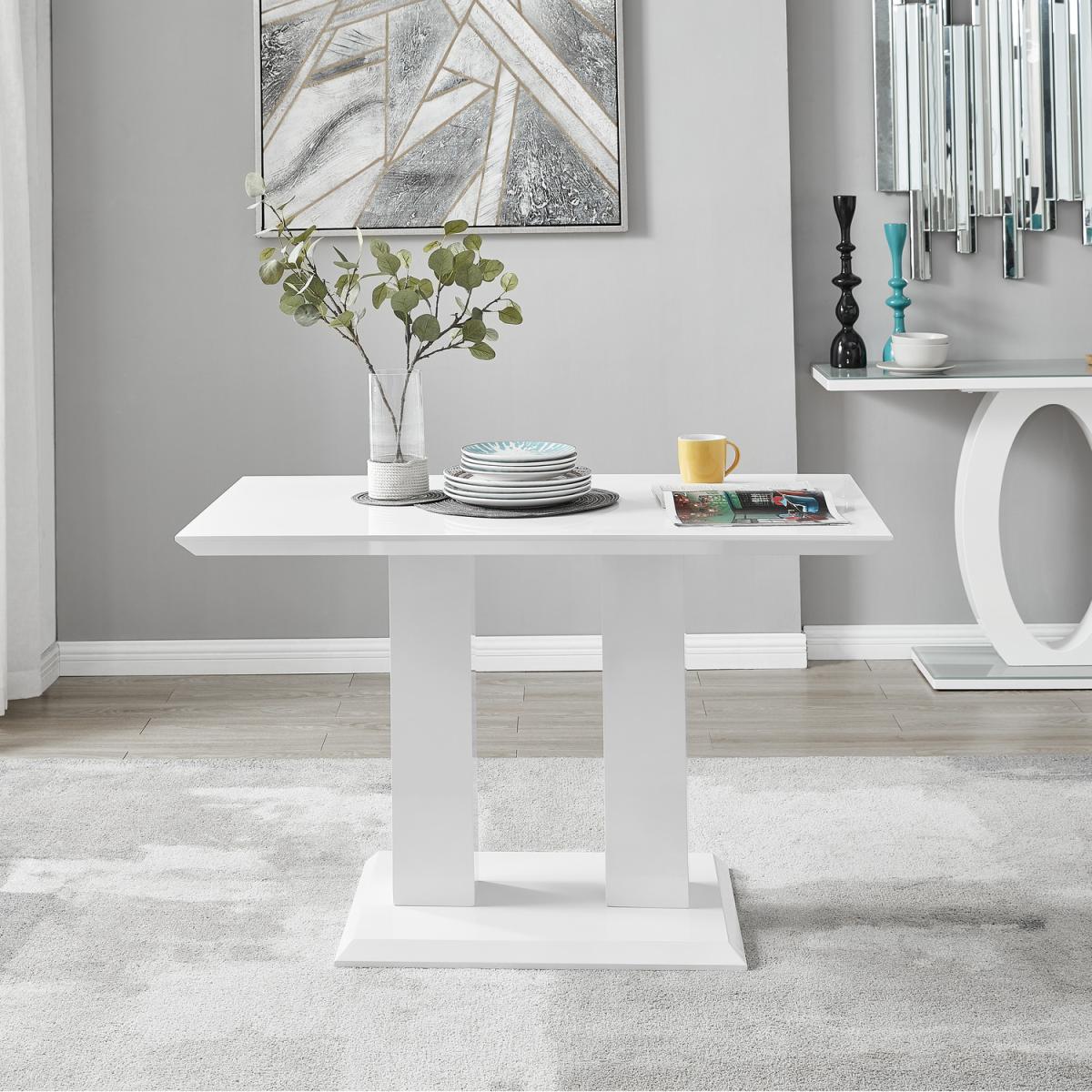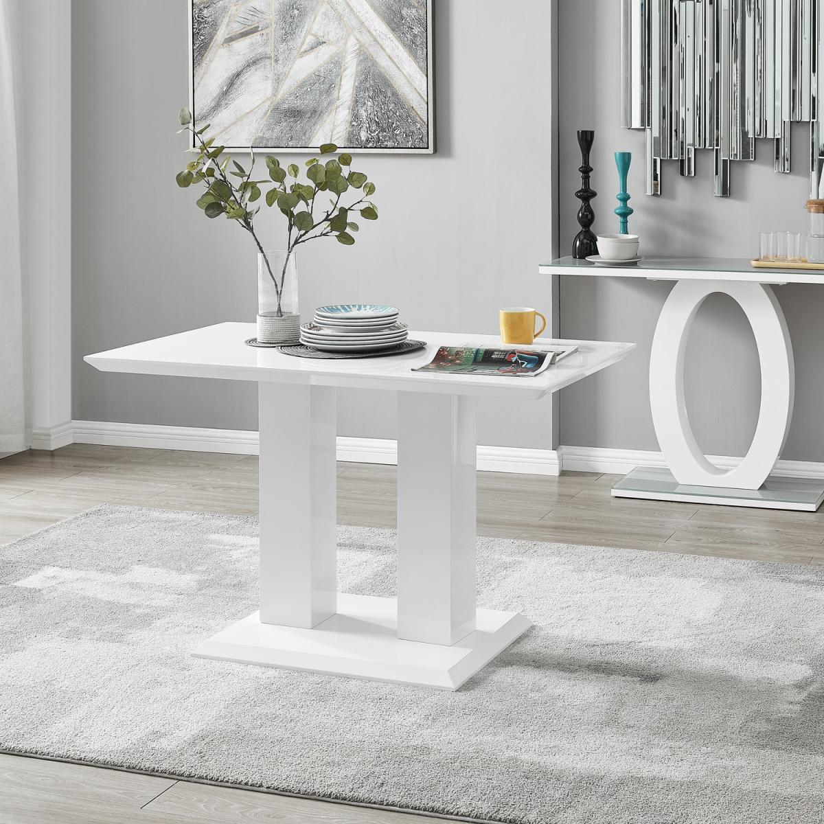 With its beautiful Grecian-style pillared frame, the Imperia 4 dining table will enrich your dining room and be the envy of your dinner guests. Featuring a 150x90cm high gloss surface finish, the table is not only a dream to wipe down after those messy dinner parties and family meals, but is also truly stunning when exposed to the light. This unique table design boasts style and affordability. Paired alongside our beautiful faux leather diamond quilted Milan chairs, you can't go wrong with this set. The chairs are made from high-quality faux leather and are ergonomically designed for maximum comfort and support.