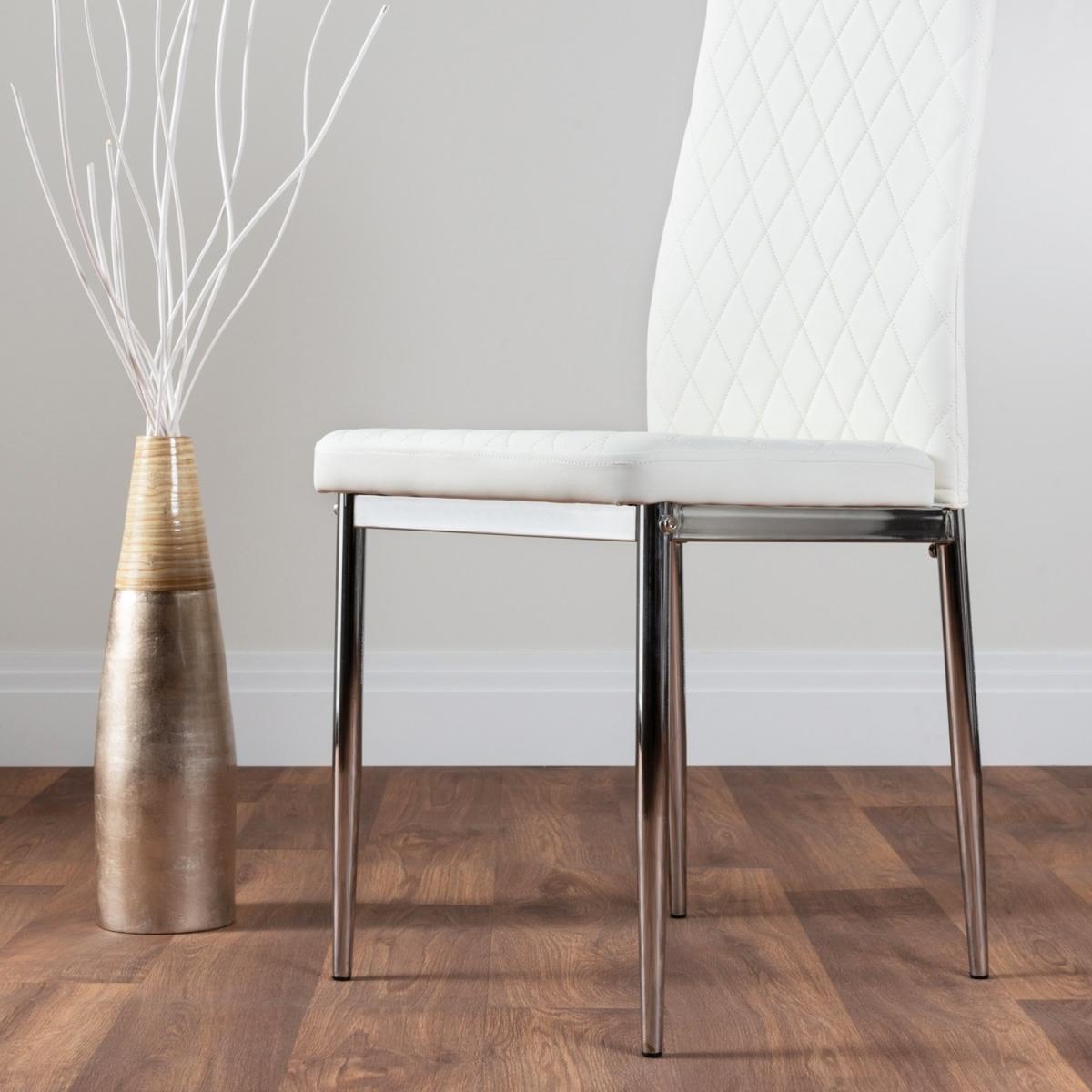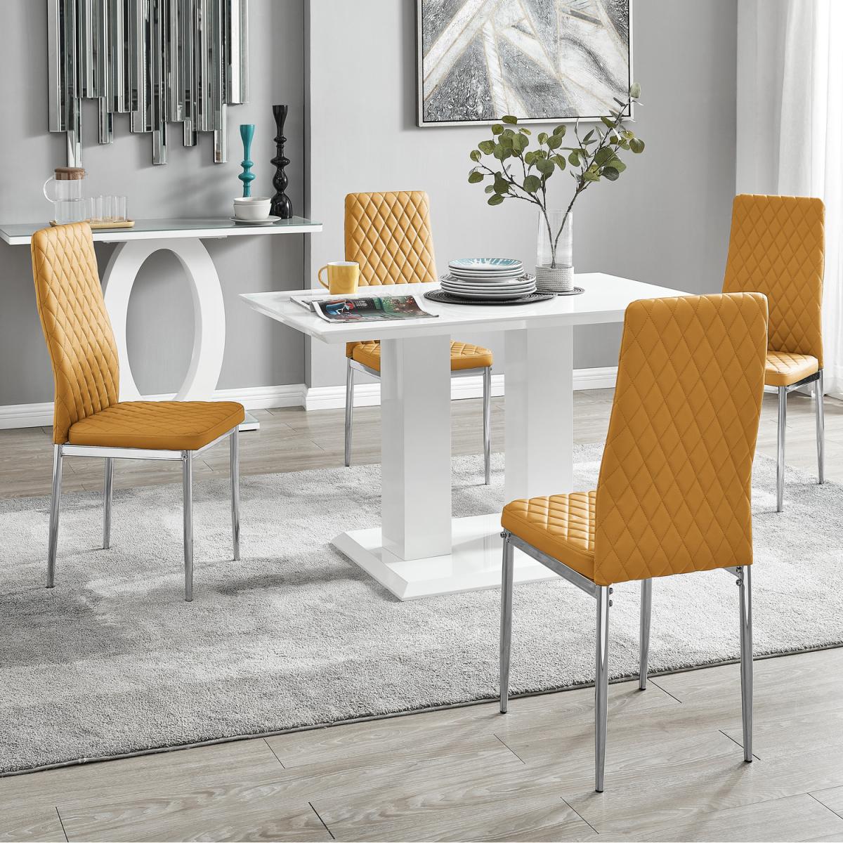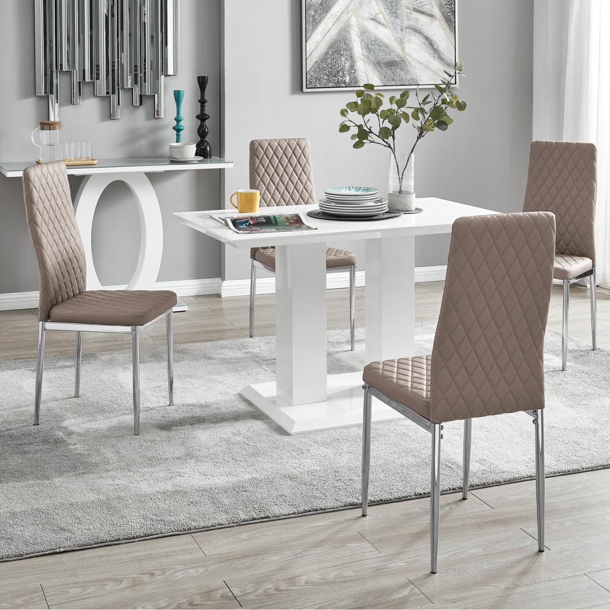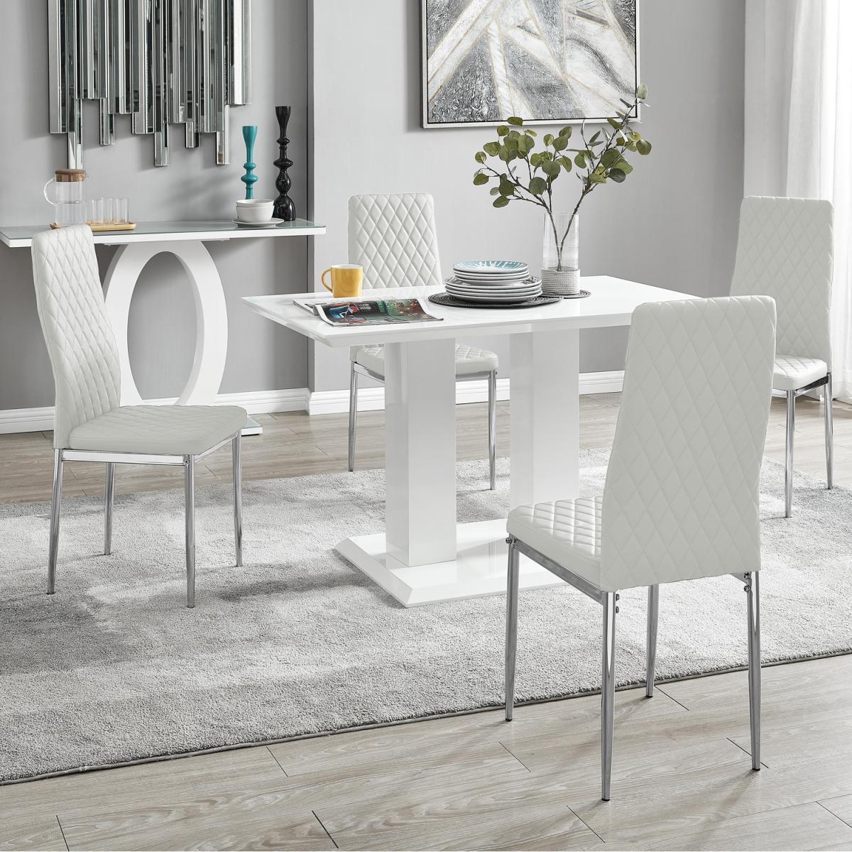 With its beautiful Grecian-style pillared frame, the Imperia 4 dining table will enrich your dining room and be the envy of your dinner guests. Featuring a 150x90cm high gloss surface finish, the table is not only a dream to wipe down after those messy dinner parties and family meals, but is also truly stunning when exposed to the light. This unique table design boasts style and affordability. Paired alongside our beautiful faux leather diamond quilted Milan chairs, you can't go wrong with this set. The chairs are made from high-quality faux leather and are ergonomically designed for maximum comfort and support.