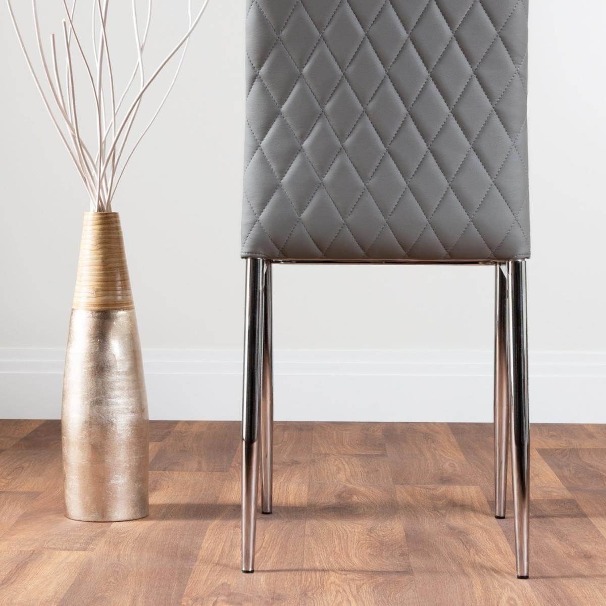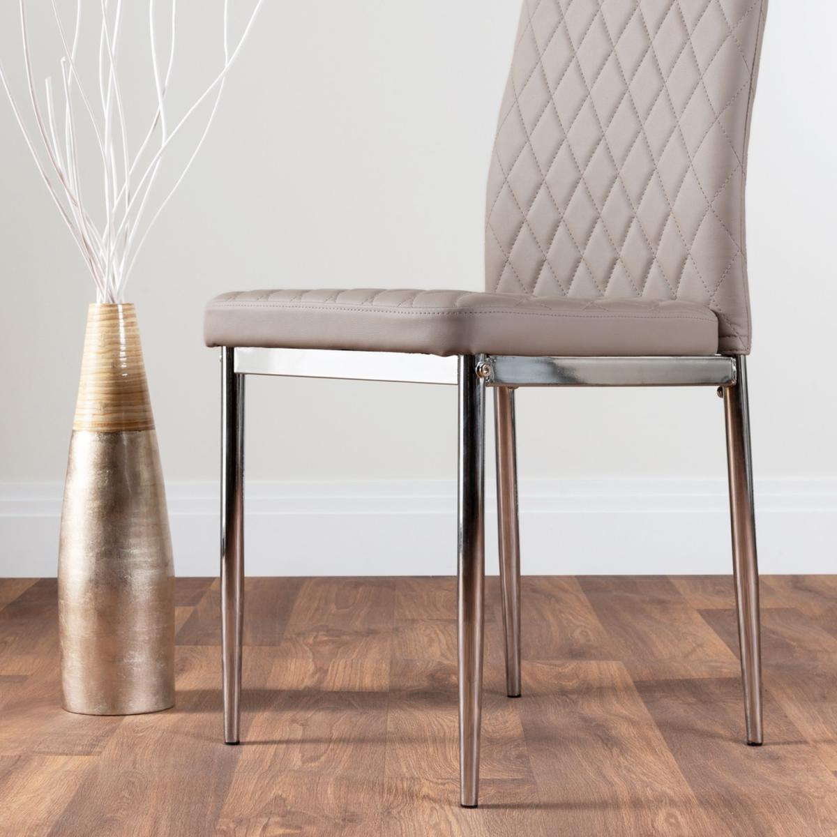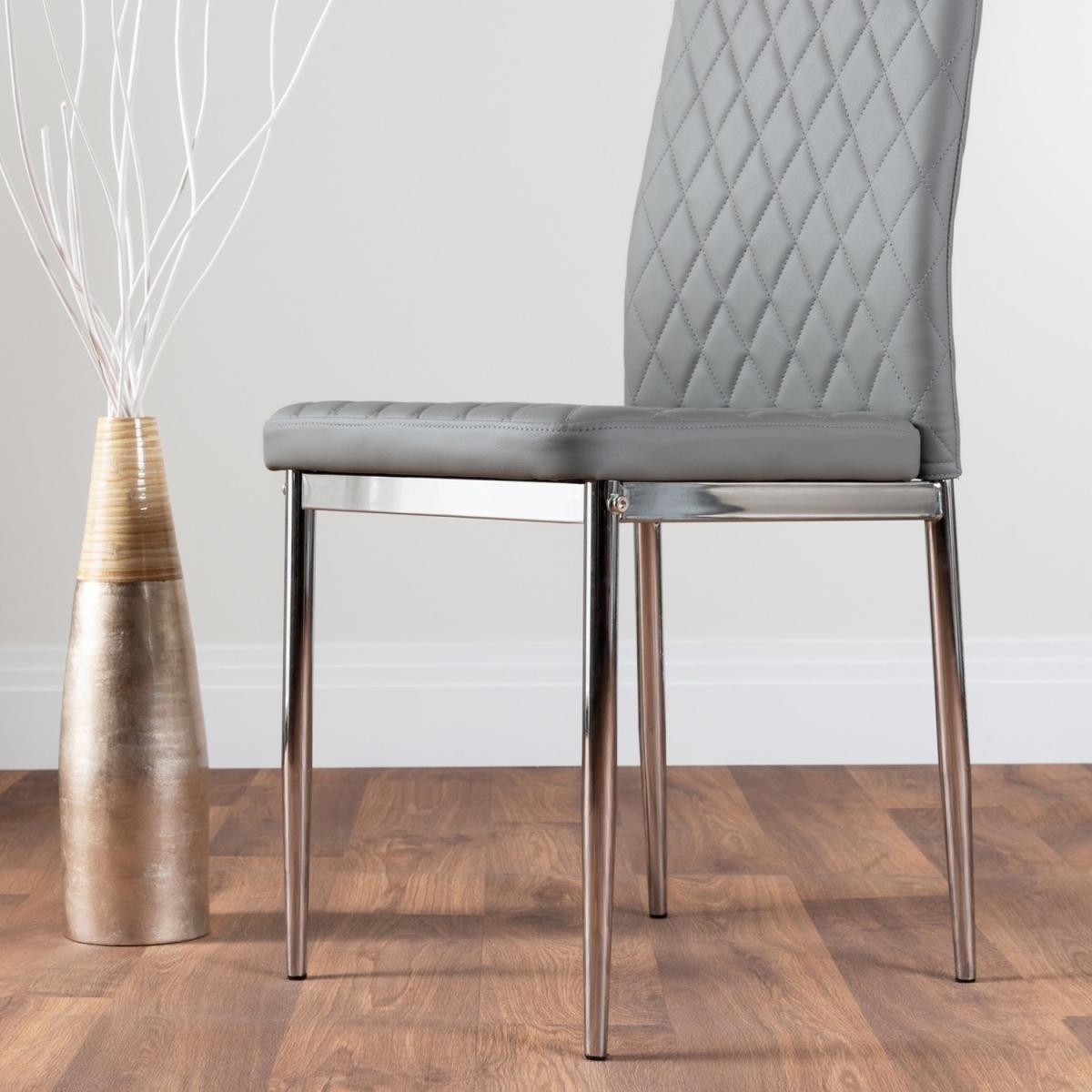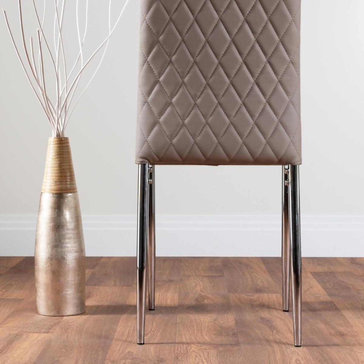 With its beautiful Grecian-style pillared frame, the Imperia 4 dining table will enrich your dining room and be the envy of your dinner guests. Featuring a 150x90cm high gloss surface finish, the table is not only a dream to wipe down after those messy dinner parties and family meals, but is also truly stunning when exposed to the light. This unique table design boasts style and affordability. Paired alongside our beautiful faux leather diamond quilted Milan chairs, you can't go wrong with this set. The chairs are made from high-quality faux leather and are ergonomically designed for maximum comfort and support.