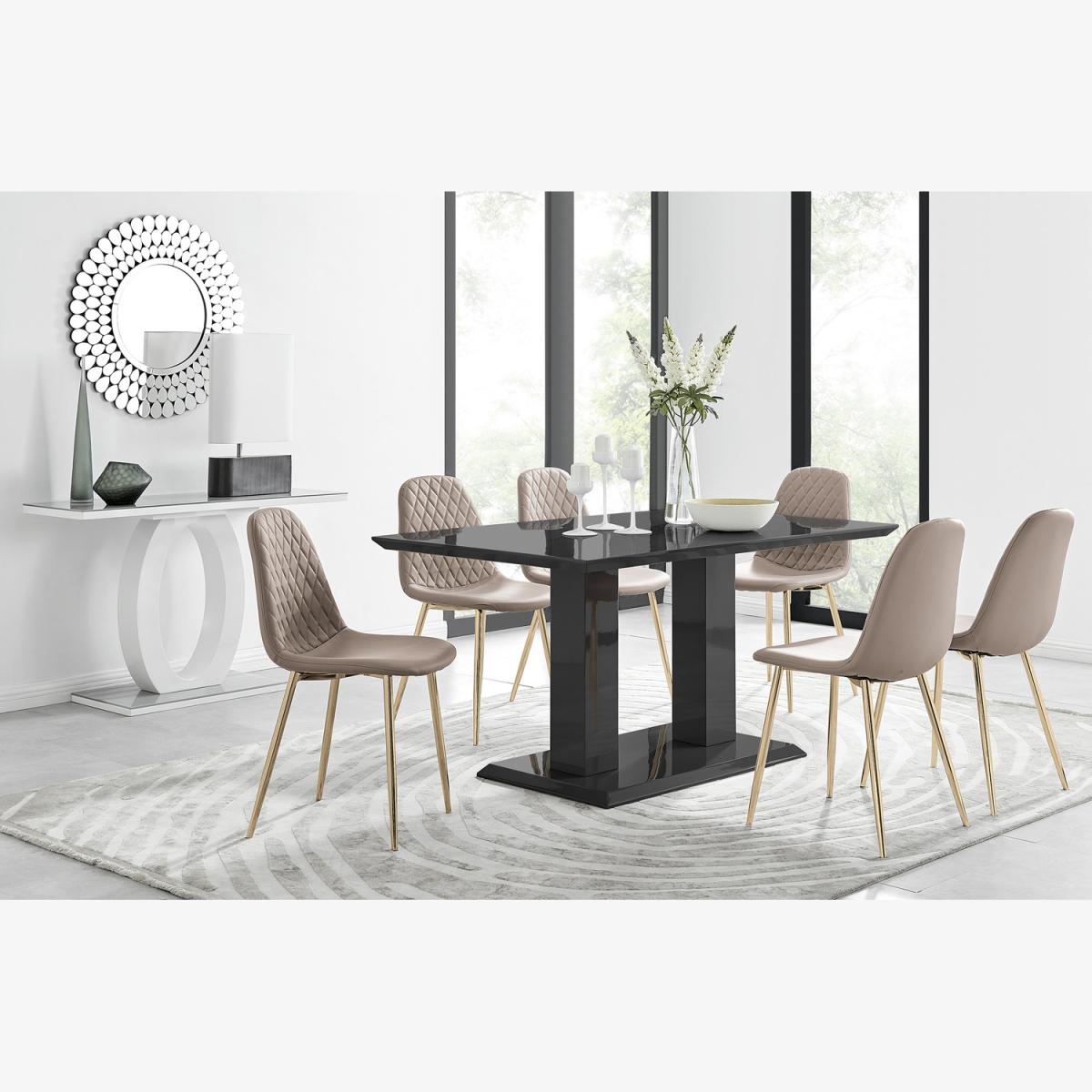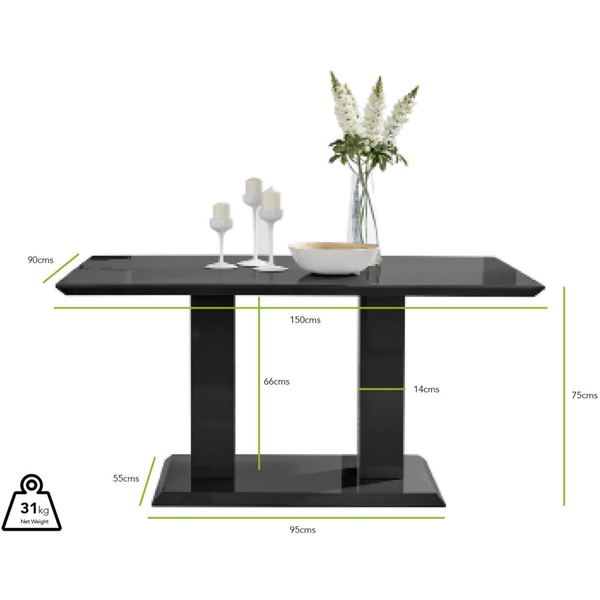 Add a touch of class to your dining room with this beautiful Imperia dining set. The dining table boasts a large 150x90cm surface leaving plenty of room for guests and has a slick high gloss lacquer finish making it a stand out addition to any home! Styled with our statement Corona dining chairs, this set is a perfect balance of pattern and texture. The trendy chrome legs of the Corona chairs are a great way to add an accent of lustre to your home. The Scandi-style faux leather seat with diamond pattern stitching is a unique take on a classic design offering comfort and durability for everyday use.