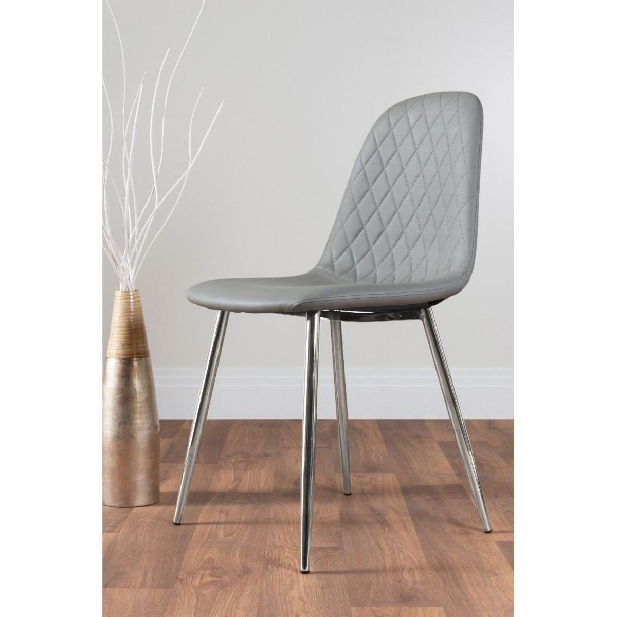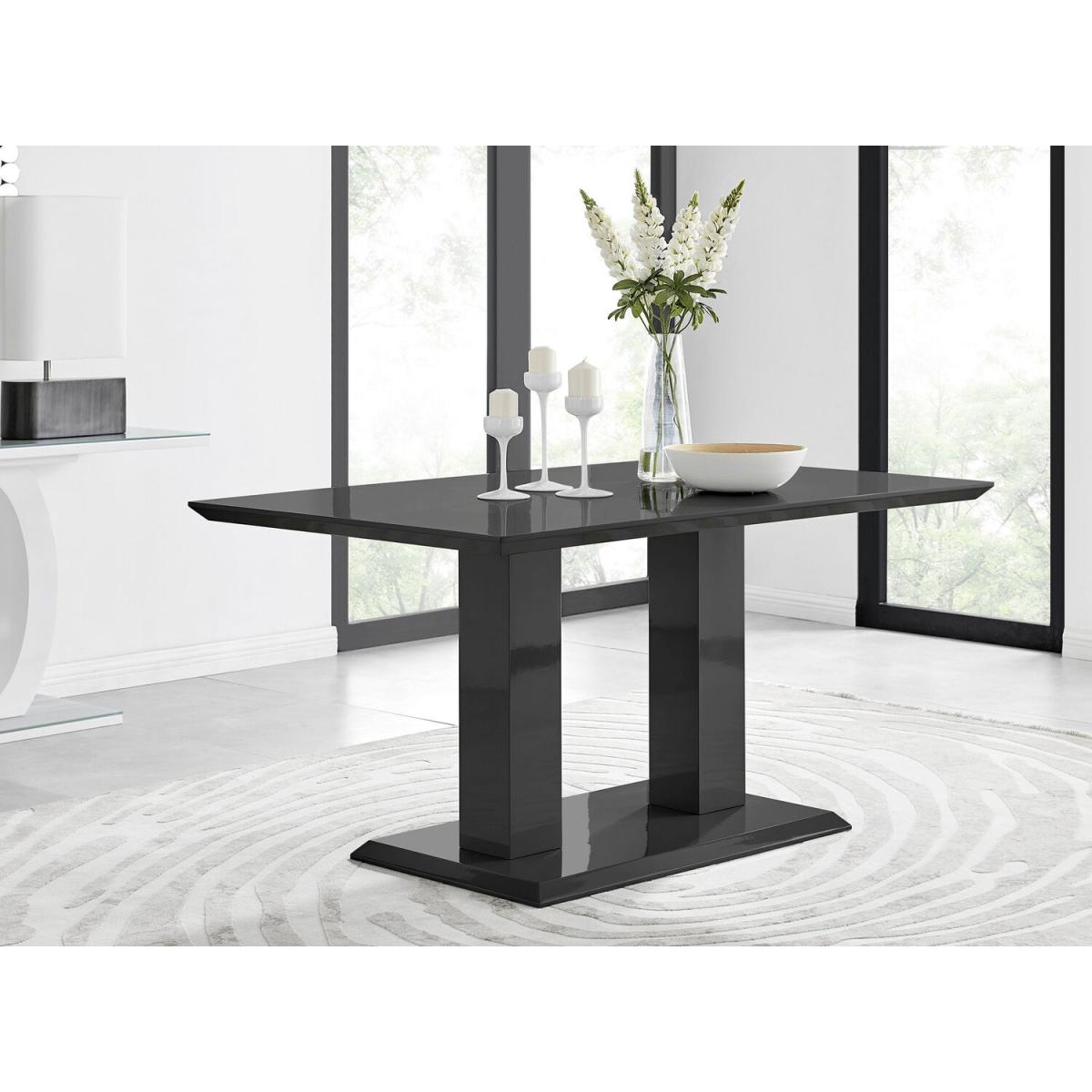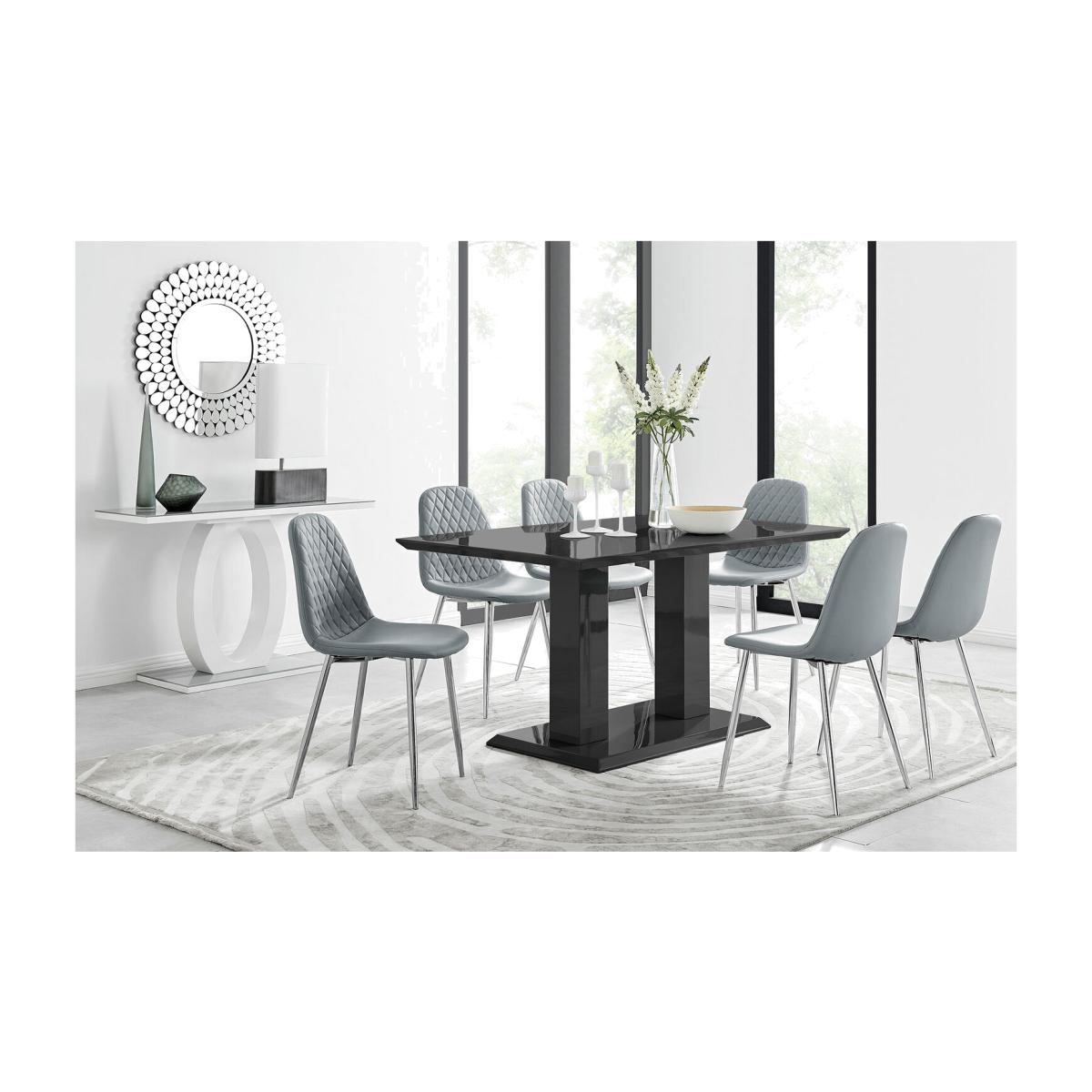Add a touch of class to your dining room with this beautiful Imperia dining set. The dining table boasts a large 150x90cm surface leaving plenty of room for guests and has a slick high gloss lacquer finish making it a stand out addition to any home! Styled with our statement Corona dining chairs, this set is a perfect balance of pattern and texture. The trendy chrome legs of the Corona chairs are a great way to add an accent of lustre to your home. The Scandi-style faux leather seat with diamond pattern stitching is a unique take on a classic design offering comfort and durability for everyday use.